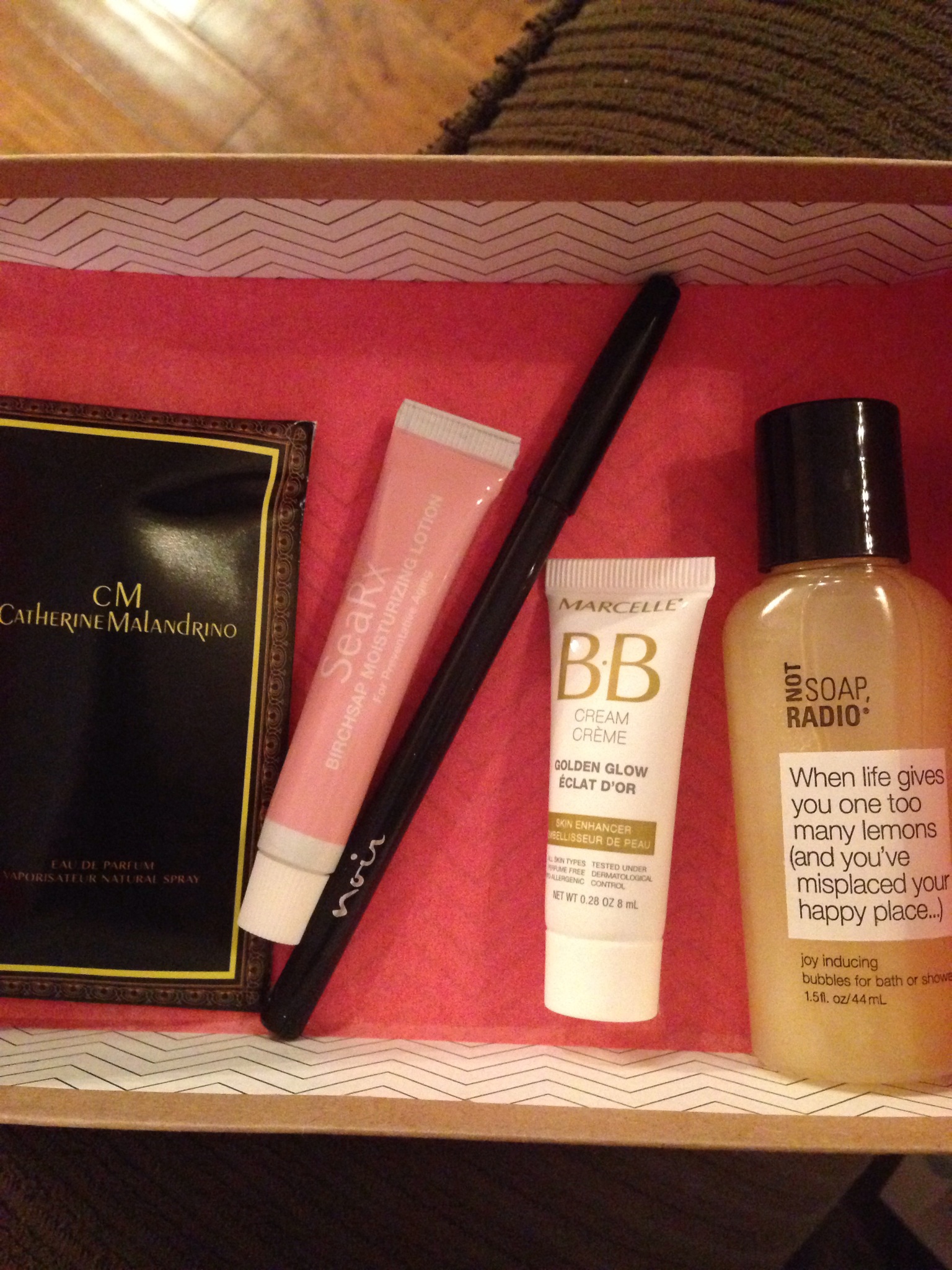 Let’s get the big boo out of the way first. It’s the Catherine Malandrino Style de Paris perfume. Now, I feel like I say this every time but I’m gonna say it again. This is not against this particular perfume. I just don’t wear perfume and therefore not interested in getting samples. So when I get one in my box, my face immediately goes like this: -__-