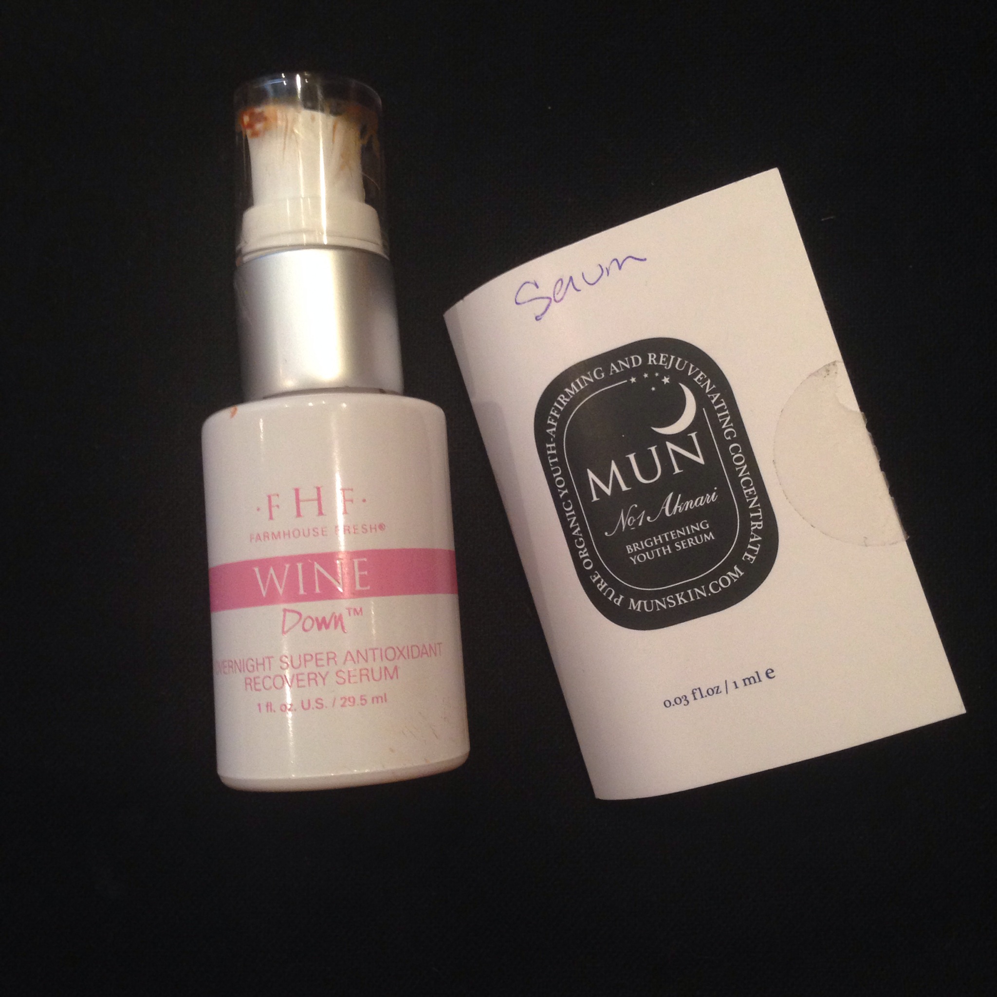 Only two serum empties this month cuz I was using an actual full size product. The Farmhouse Fresh Wine Down serum is sold at the spa where I work. Well, I don’t work AT the spa, but it’s very very close to me. In fact it’s in such close proximity I feel an impending credit card situation happening almost constantly. It’s too easy to just walk over there on lunch break. I mean, they don’t make you scan fingerprints or get pat-downs or anything else undesirable in order to shop there. No, they just leave the door unlocked all willy nilly and you can just walk in all you want.