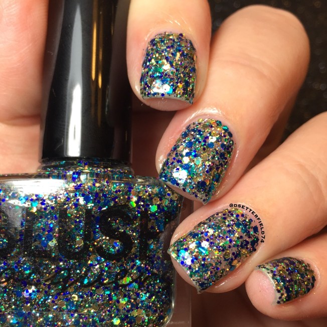 Ugh. My eyes! This is only two coats over a naked nail. The glitter payout is AH. MA. ZING. I did do some manually placed glitters around the cuticle line to make it nice and neat, because I have OCD and knew I’d spend 17 hours obsessing over anything less than that. But I was quite impressed with this polish. It can be a topper, sure, but it works fantastically on its own. Super smooth application as well. Hooray!
