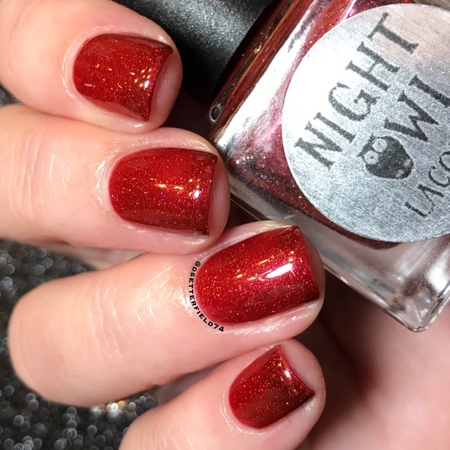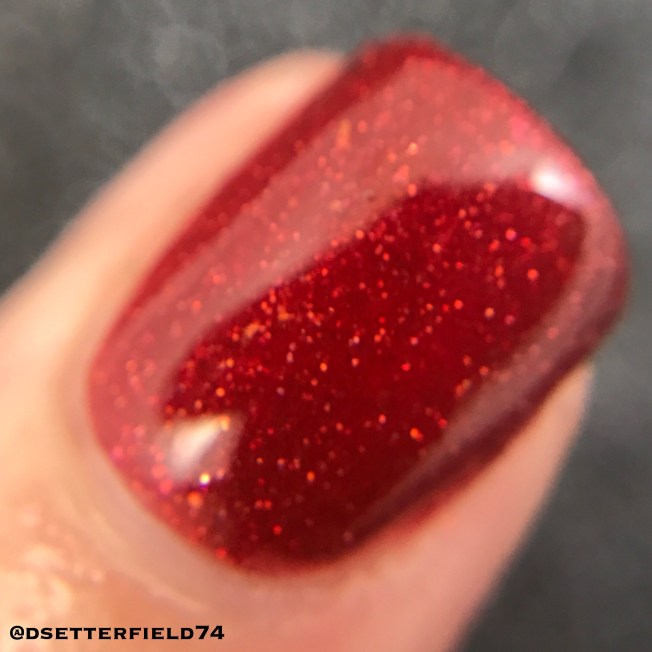 Apparently, Fluffy is guarding the Sorcerer’s Stone because that’s what this polish is inspired by. It’s a gorgeous deep red jelly with copper holo glitter and red micro flakies. And I flippin love it. There’s so much depth in here. Jelly formulas are the best. Heart eyes times a billion.