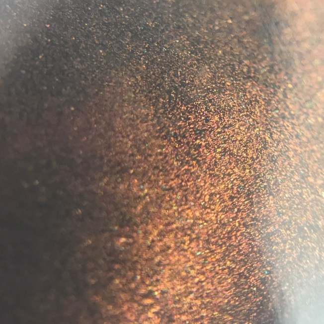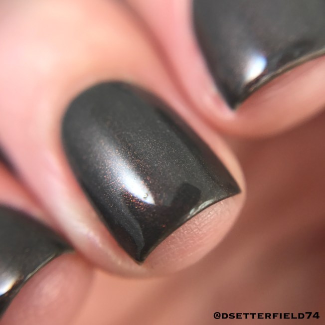 Oooooh, dreamy! This looks just like a campfire, if you ask me. A smokey grey loaded with tons of copper shimmer. The contrast is stunning. One of the only reasons to love fall – colors like this.
