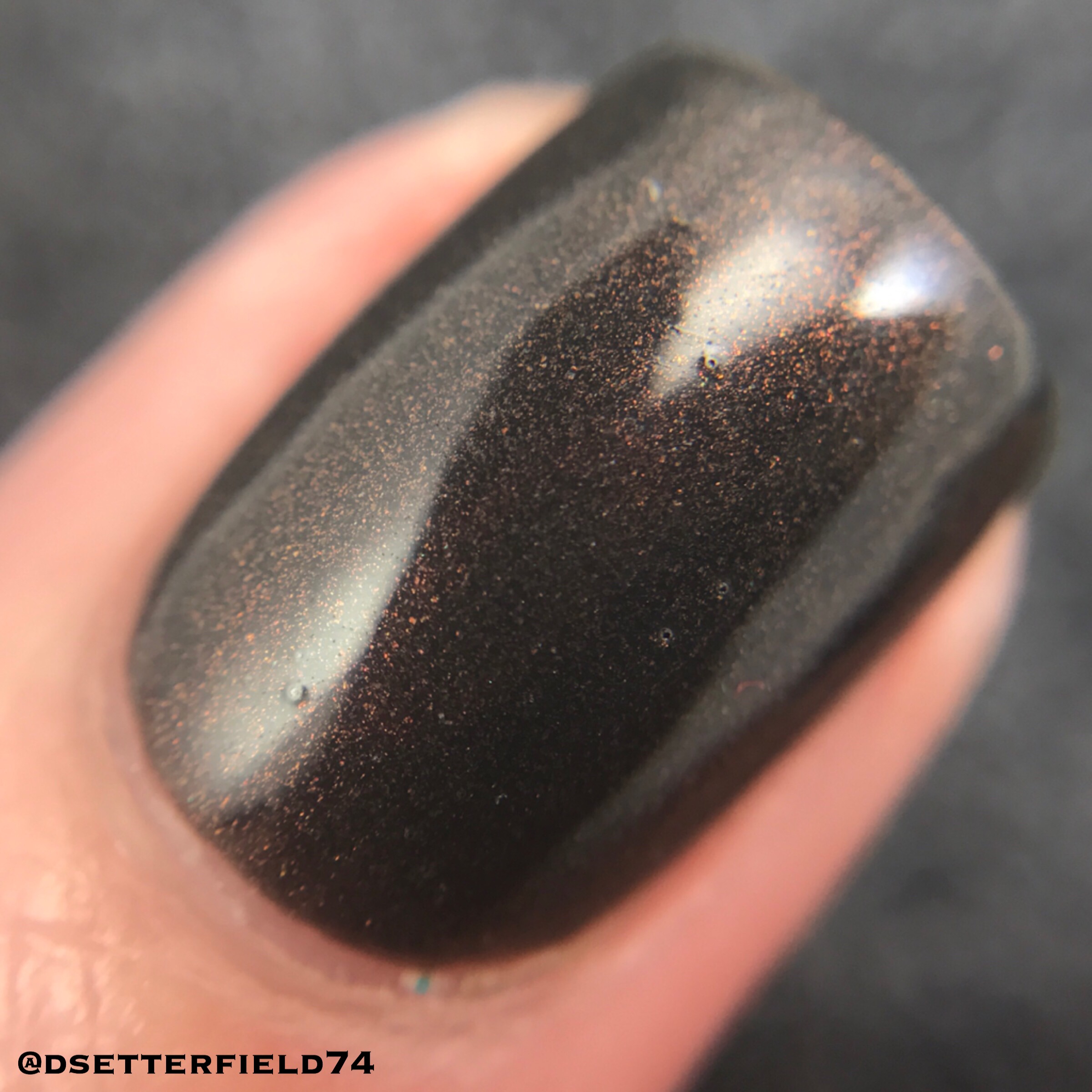 Oooooh, dreamy! This looks just like a campfire, if you ask me. A smokey grey loaded with tons of copper shimmer. The contrast is stunning. One of the only reasons to love fall – colors like this.