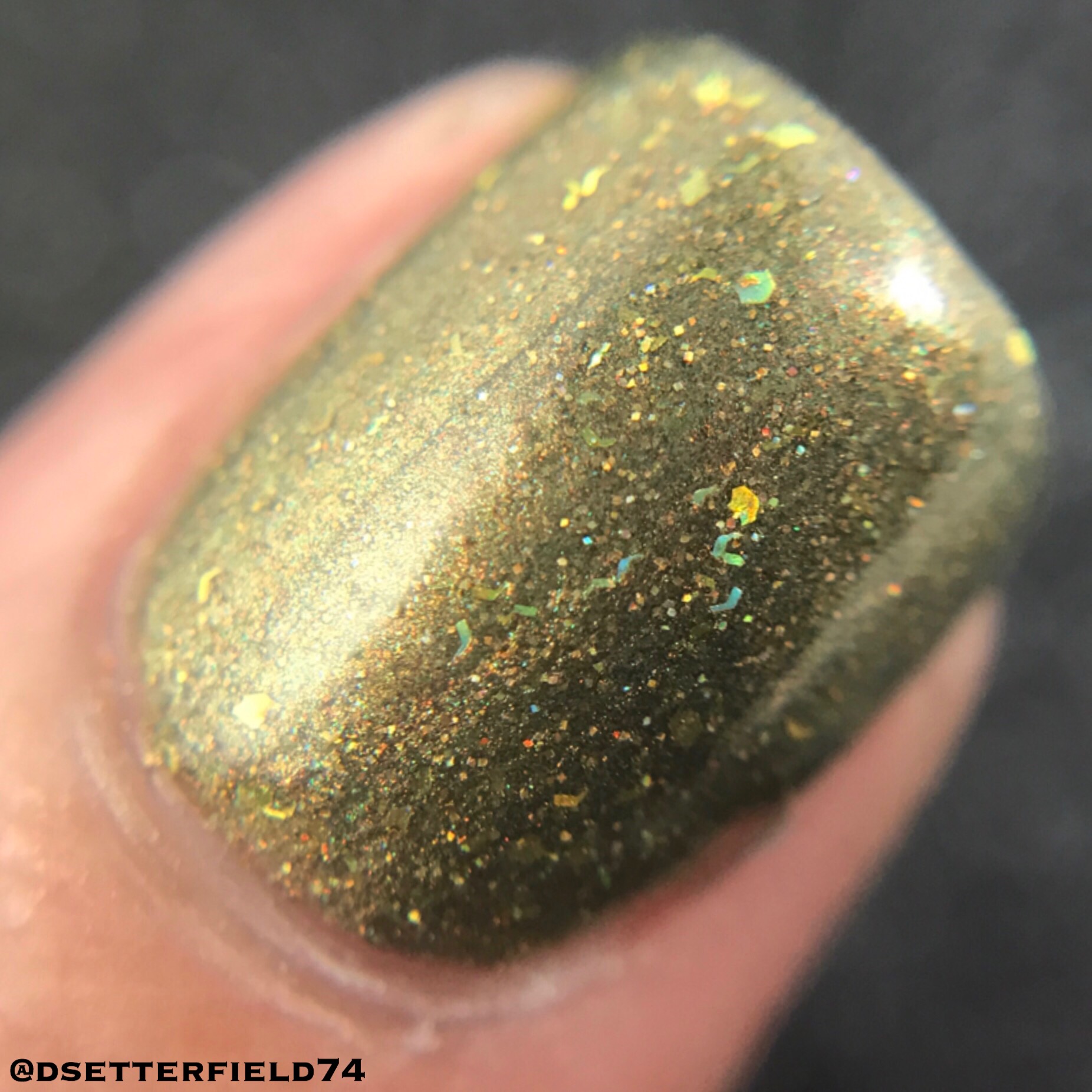This one is a shimmery olive green packed full of gold holo micro glitters and gold holo shreds. It’s perfection and the collection wouldn’t be complete without it. It’s fall in a bottle, but just the warm part. Like today, when it was 80-degrees. That kind of fall. The only fall that matters. Because after the warm part, things turn brown. And then naked. And despite what you’ve heard, naked is not an attractive look for anyone. Unless you’re Leonardo DiCaprio. I assume, anyway.