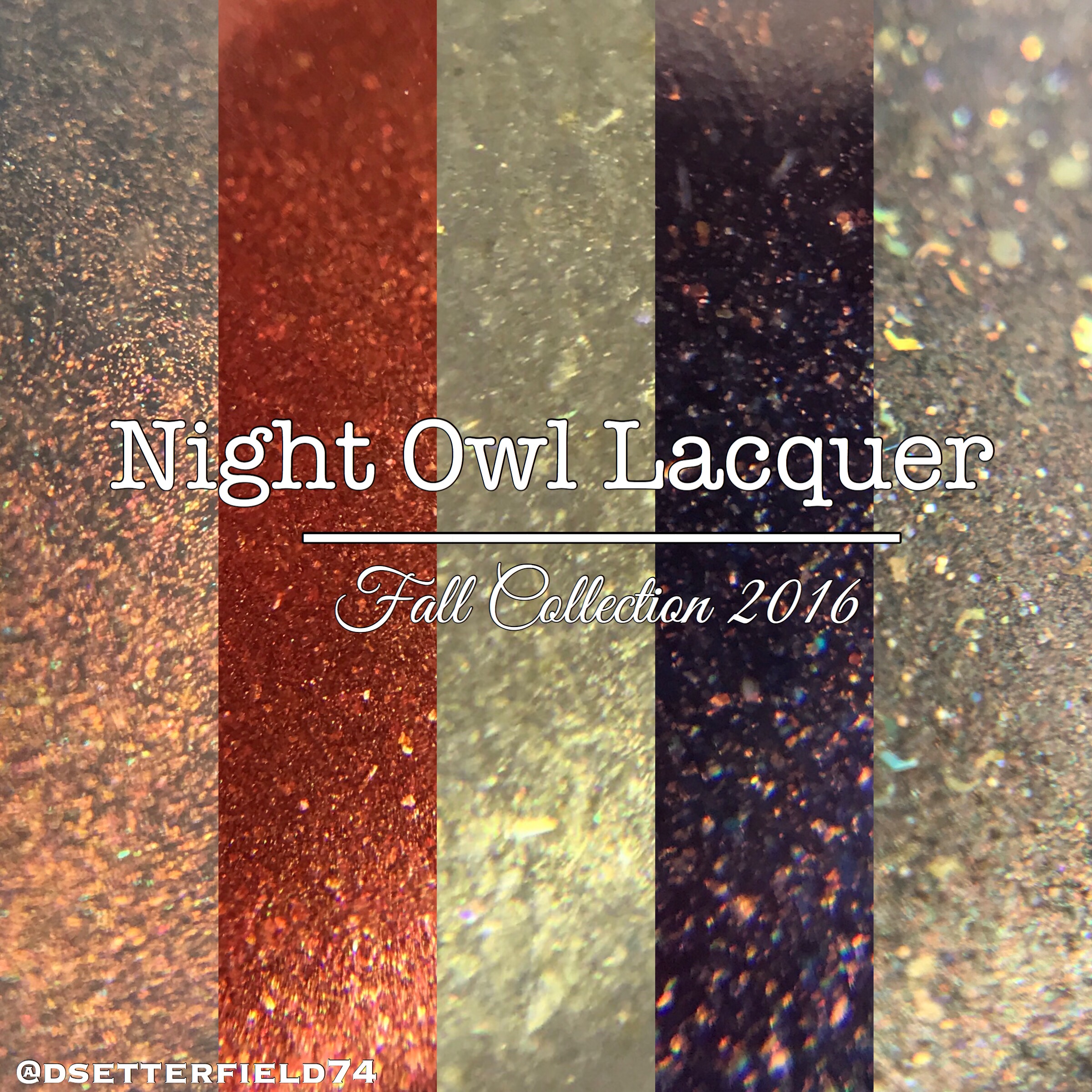 But let’s talk about polish because that at least doesn’t give me the hives. I received a gorgeous set of fall polishes from Night Owl Lacquer to show you. Look: