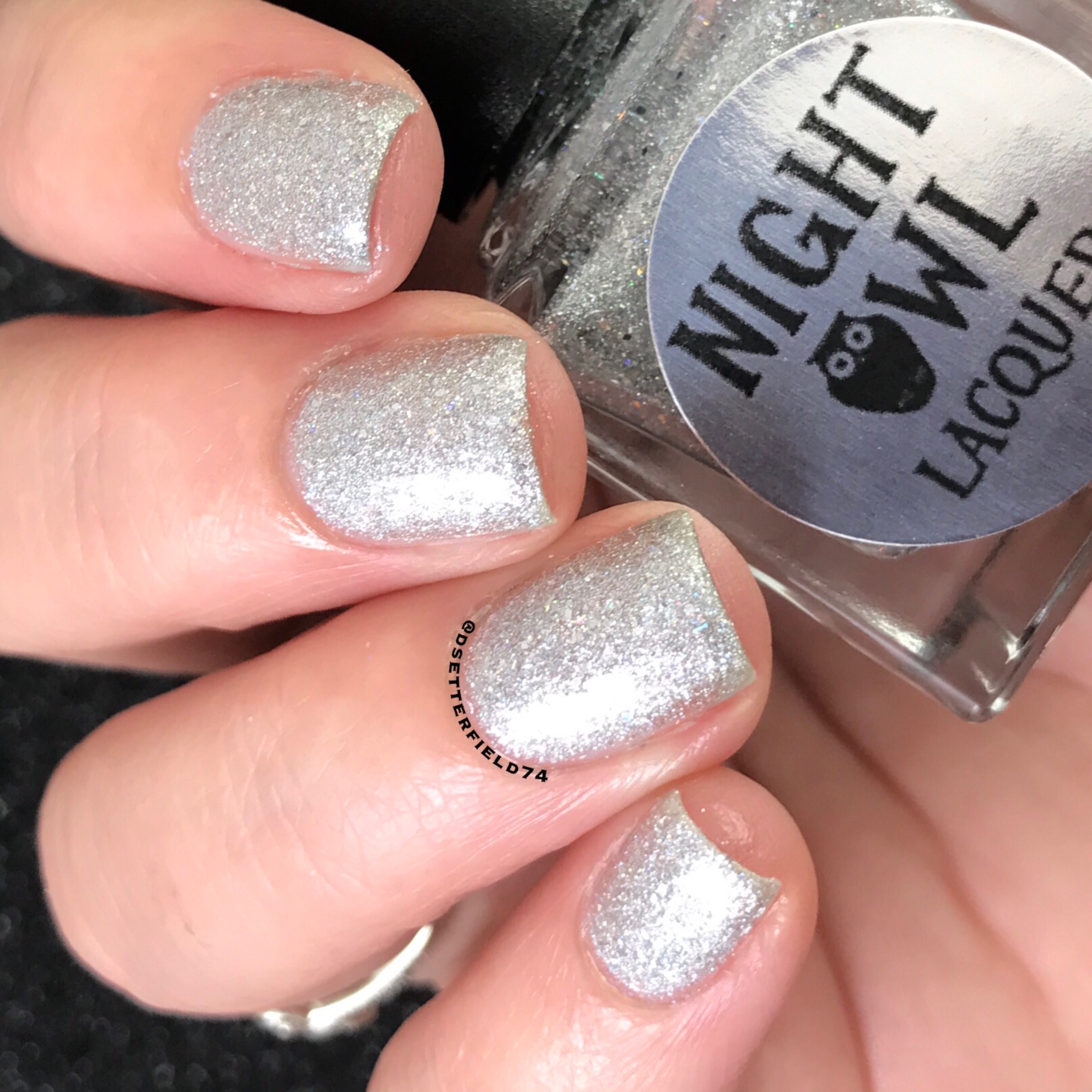 So we have a silver polish packed with silver holographic glitters and shreds and white micro flakies. WHITE MICRO FLAKIES?! Well, I reckon I’m gonna need a bucket full of those.