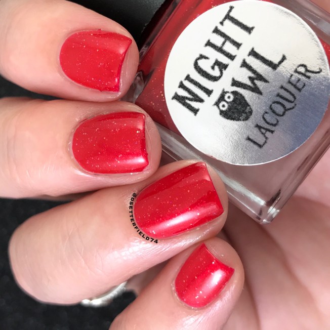 Well, how else were you going to get through the holidays without a red nail polish? Basically, Lindsay has saved you. This is a good one too. Which doesn’t surprise me, cuz the minute Night Owl Lacquer releases something not amazing, pigs are probably flying and I’ve got pants on.