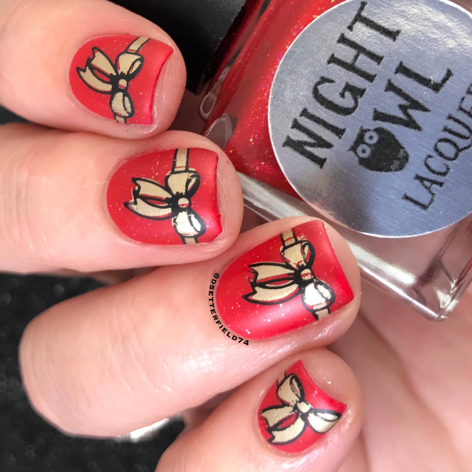 Is this not precious? I used the Uber Chic Beauty Christmas 02 plate again and they had this layered two step bow image. Now, I realize I didn’t line up the black outline image as perfect as I could’ve – except on my pinky in a brief moment of geniosity .. geniusness .. geni-something. Well, you get it.