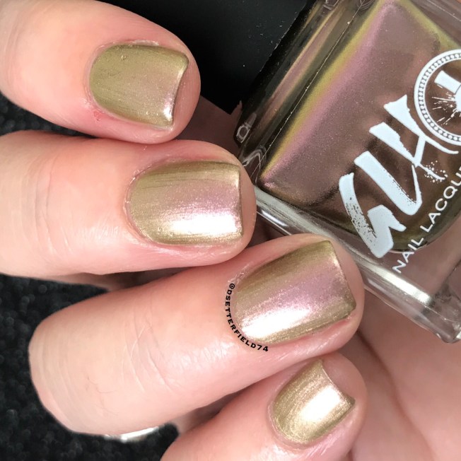 Can you even? NO. YOU. CANNOT. What a glorious color! An antique-y gold with a raspberry shimmer running through it. If I knew it wouldn’t taste like a science experiment, I’d be licking this off my fingers STAT. Gracious.