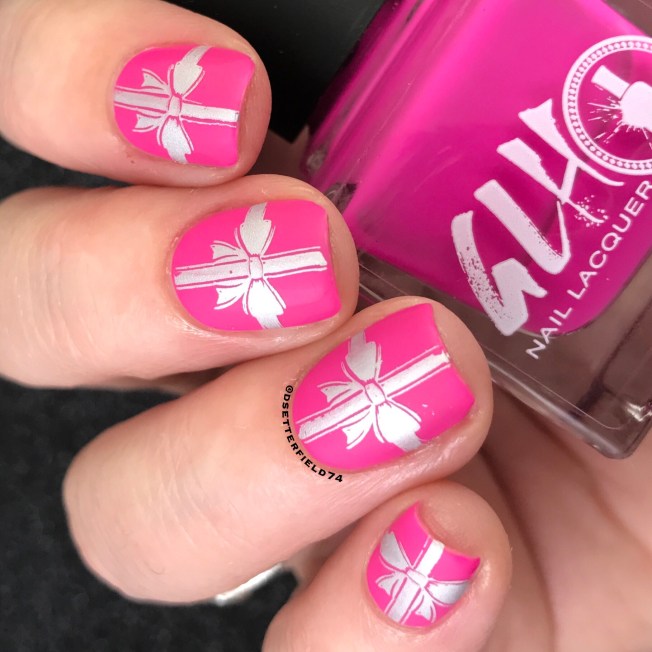 Okay, still not clever, but I like these bows. I used the Can’t Wait for Xmas 01 plate from Lina Nail Art Supplies, and it’s one of my favorite purchases this year. I own all the plates from Lina cuz I don’t know how to shop like a normal person. Must own all the things. It’s a sickness, I know.