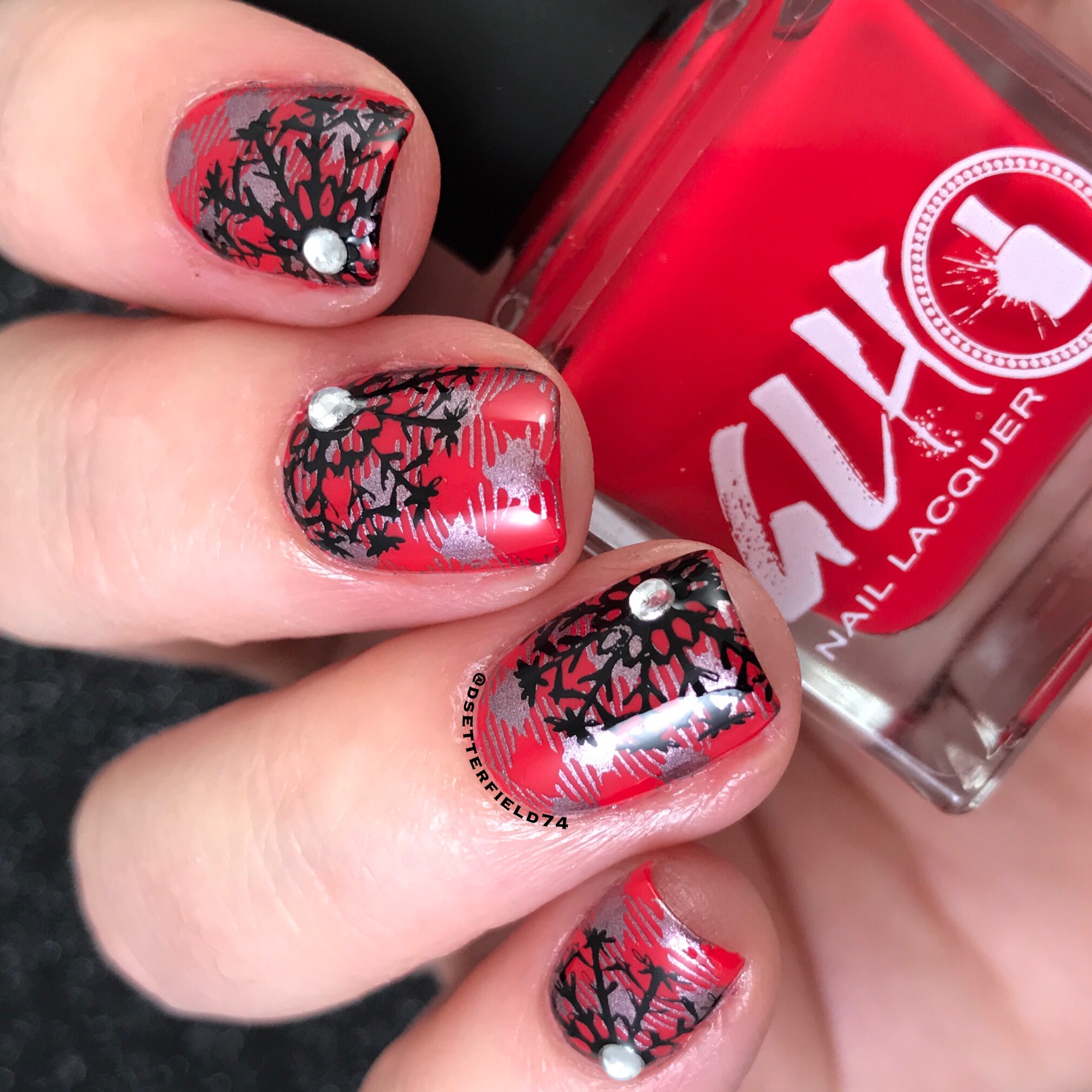 OMG, you guys. Don’t even ask what this is. Started out as a cute plaid design, then the stamping demons got me. Black snowflakes?! Of course, what else could I possibly do instead? I swear, someone needs to come take away my stamping plates. I mean, I’ll karate chop your hands off over it, but still.