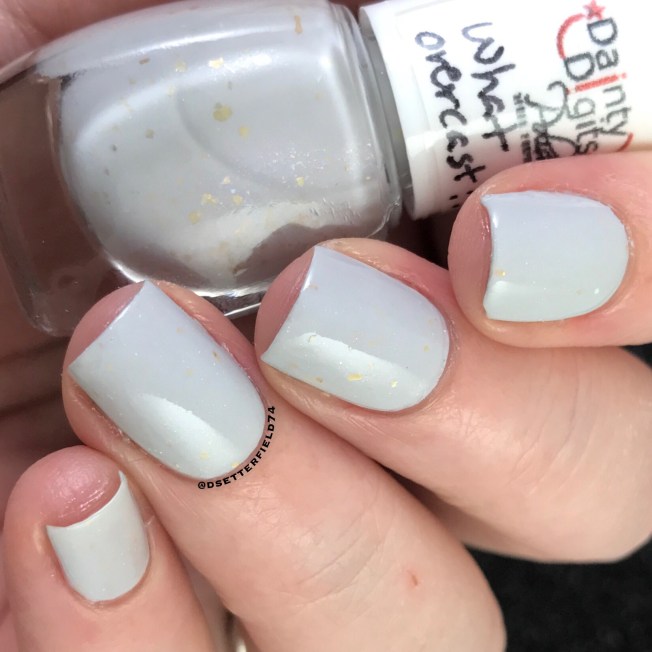 This one is a soft gray crème with golden flakies and micro shimmer pigment.  Yes, please!  Went on easy peasy in two perfect coats. Perfect for those who have important things to do.  Or, more time for naps, if you’re me.