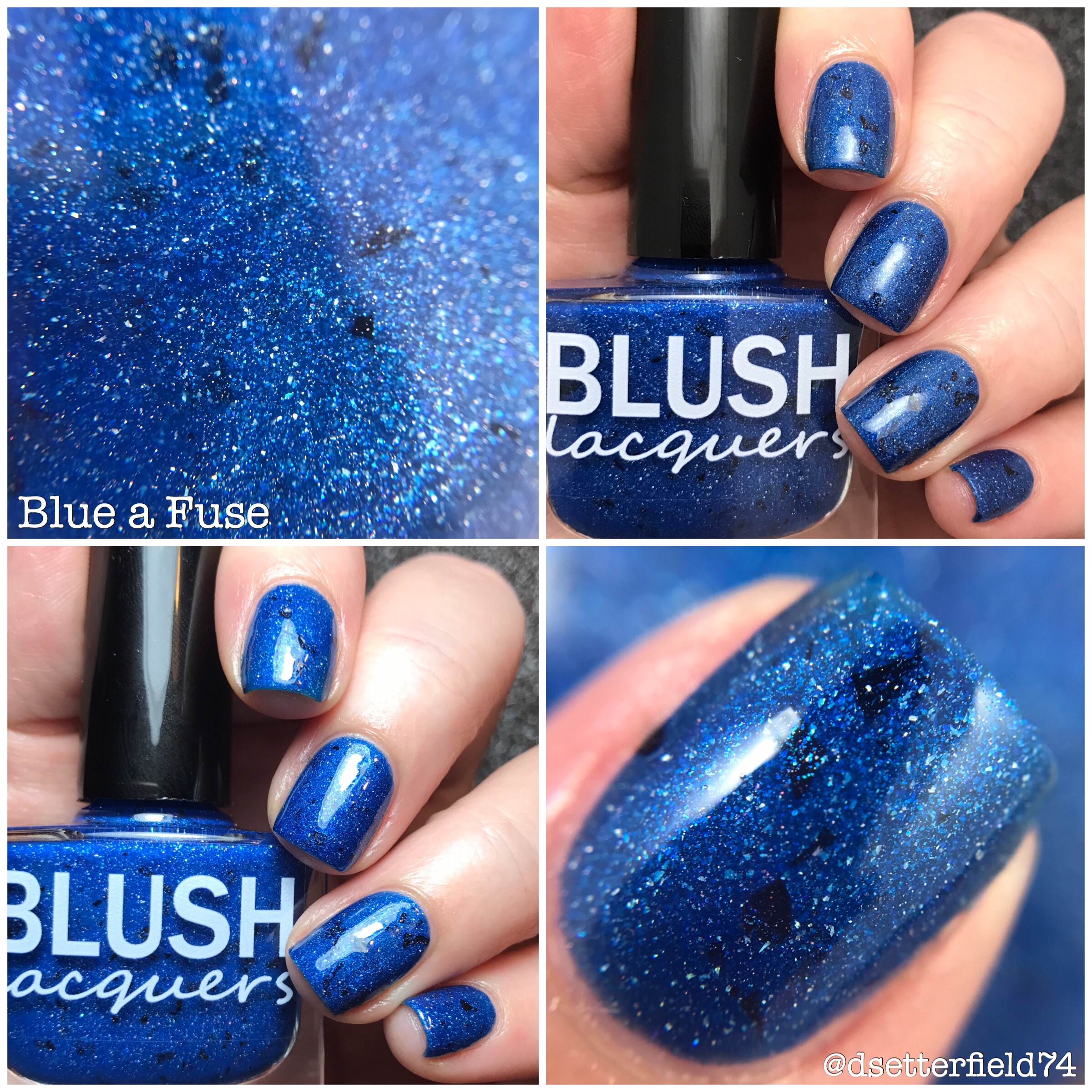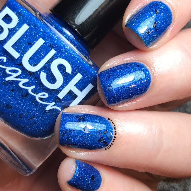 I was sent just Blush Lacquers’s contribution, Blue a Fuse, to review for you.  And it is everything I’d ever expect from Victoria.  It has a deep blue base and full of blue micro flakies, holo, holo flakies with a hint of black shreds.  Two of the dreamiest coats of your life (not a typo).  And not that you need a real reason to buy this collab box (cuz we buy polish all willy nilly most of the time), but this polish right here is a damn good one.  She’s a gorgeous little lady, 100 percent.