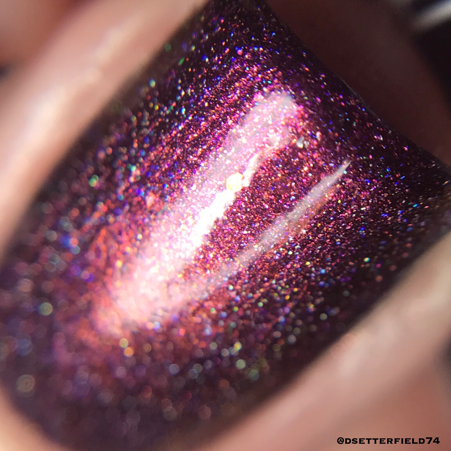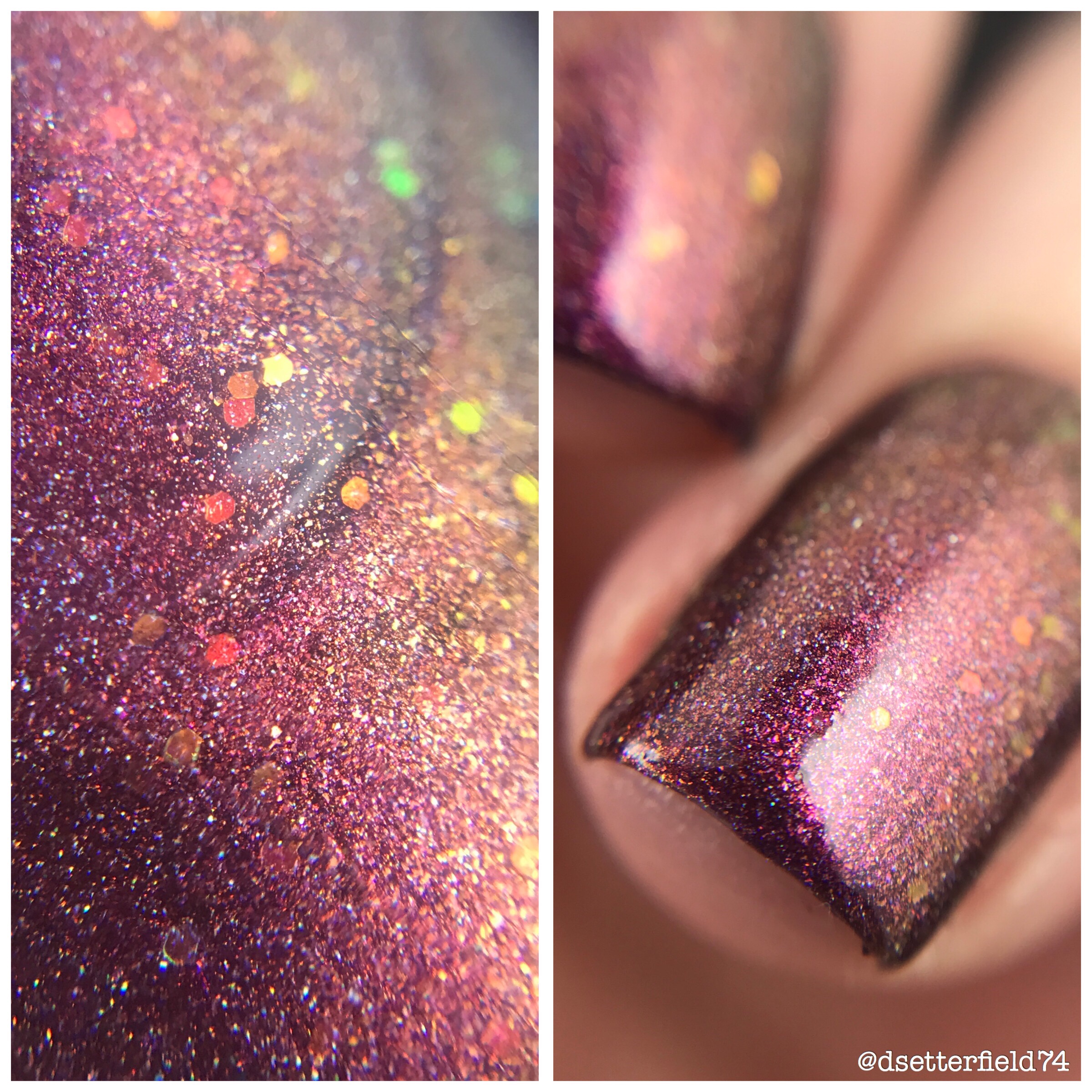 This is Project Aloha, a sunset mauve holo multichrome that shifts to peach and sandy gold with orange to green shifting iridescent glitters. And if you don’t think this looks exactly like a sunset, then I am var var concerned about your brain. Lindsey nailed it, once again, as always. I mean, did we expect anything less? NO. WE. DID. NOT.
