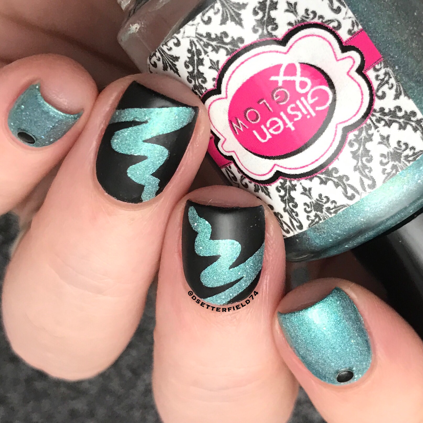 I was gonna do a mermaid mani but thought I’d do something unexpected. Not that this is particularly revolutionary or anything, but I’ve had these Twinkled T scribble vinyls for ages and figured why not?