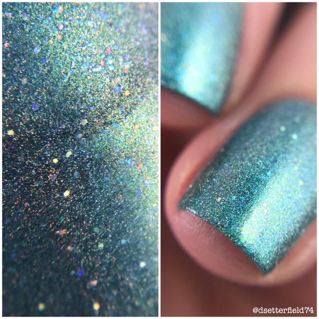 This one is a teal linear holographic with sparkles of silver holo microglitters and flashes of blue and gold shimmers. It’s a beautiful, mermaid-y, ocean-y dreamboat, and you’re just gonna go ahead and throw it in the basket. Cuz I’m the boss of you, that’s why.
