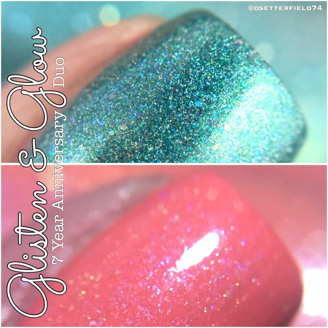 While we all sit and contemplate, let’s look at pretty things! I have two new polishes from Glisten & Glow to show you today. They are part of a duo to celebrate the anniversary of the birth of Glisten & Glow, a very worthy party idea if I ever heard one, you know, in case you need an excuse to drink a wine cooler on a Thursday. See below: