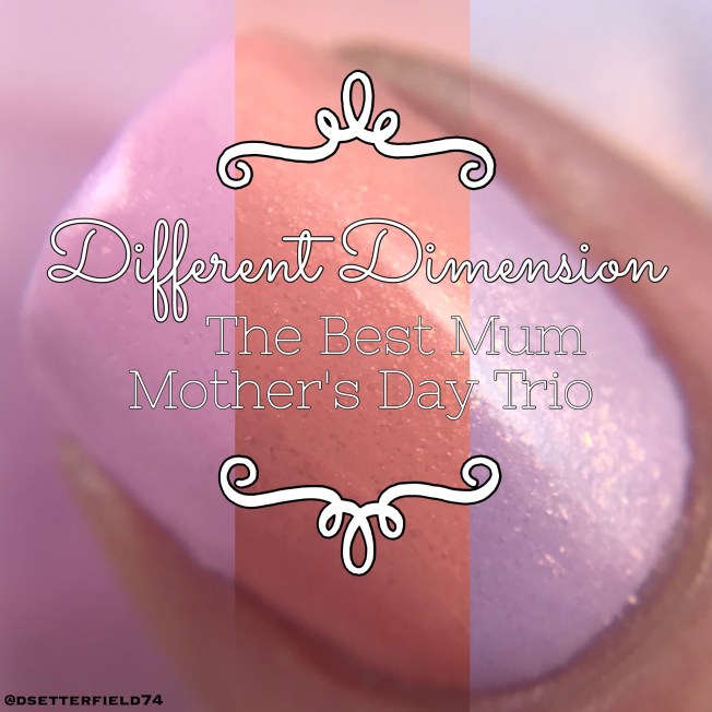 While mom reconsiders the level of her love, let’s talk polish! I have some goodies from Missi at Different Dimension to show off for you today. First time on the blog, y’all! Feeling awfully fancy right about now. There are two new trios plus a couple of April special releases to discuss. Lots to do, lots to see (and money to spend) so excitement starts NOW.