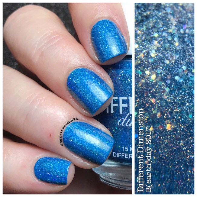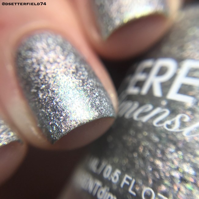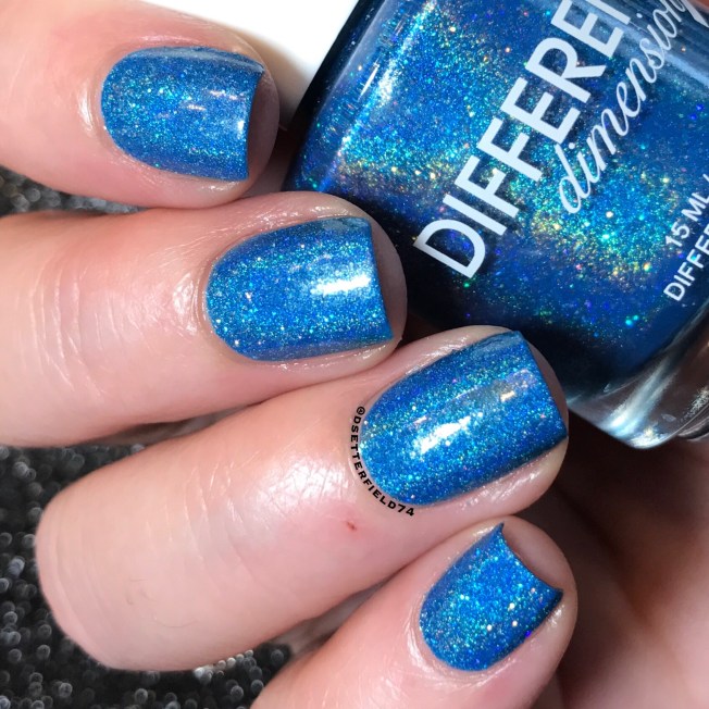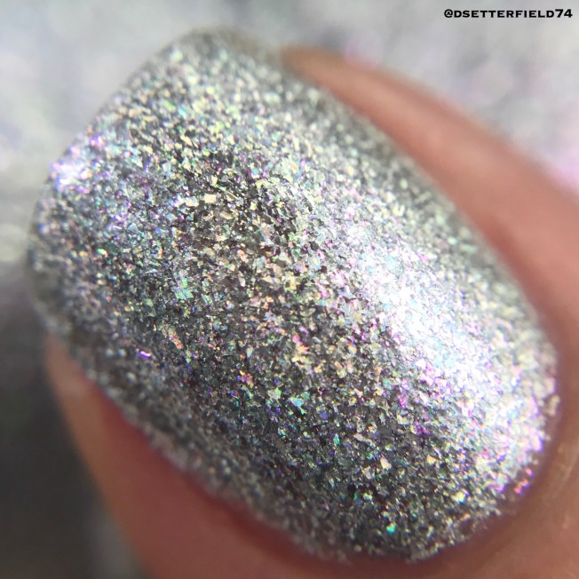 This one has holographic microflakies and turquoise shimmer. It’s very evident in the glare.