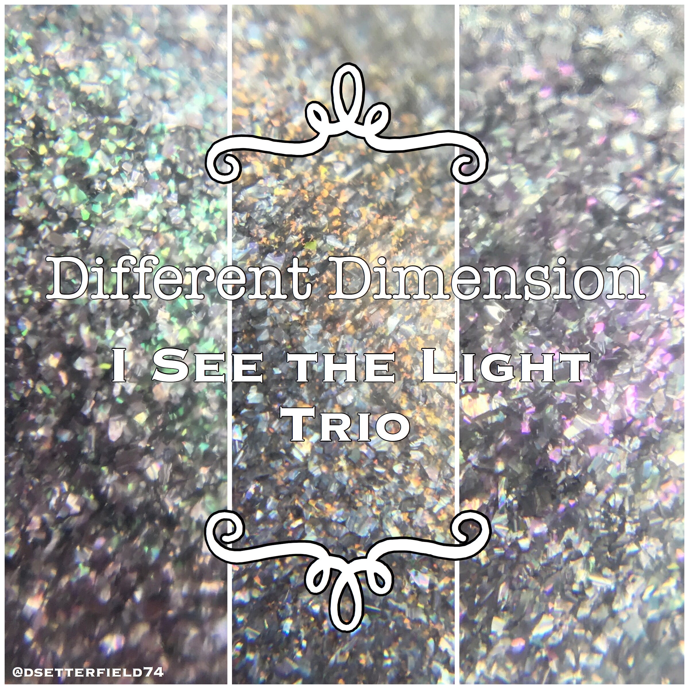 The next release is the I See the Light Trio, a set of three gorgeous holographic polishes. These are legit stunning, with special illuminating shimmers for an amazing glowing effect. Here’s proof: