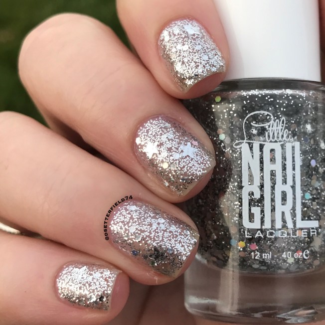 So I don’t know if food is ever coming, but the nail polish never stops. I have a real beauty to share with you today. Little Nail Girl turned three years old this past week, so Heather created this super blingy polish to help celebrate the occasion. In case you need an excuse to drink a wine cooler on a Saturday afternoon, take a look at this: