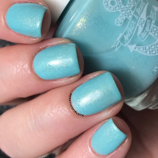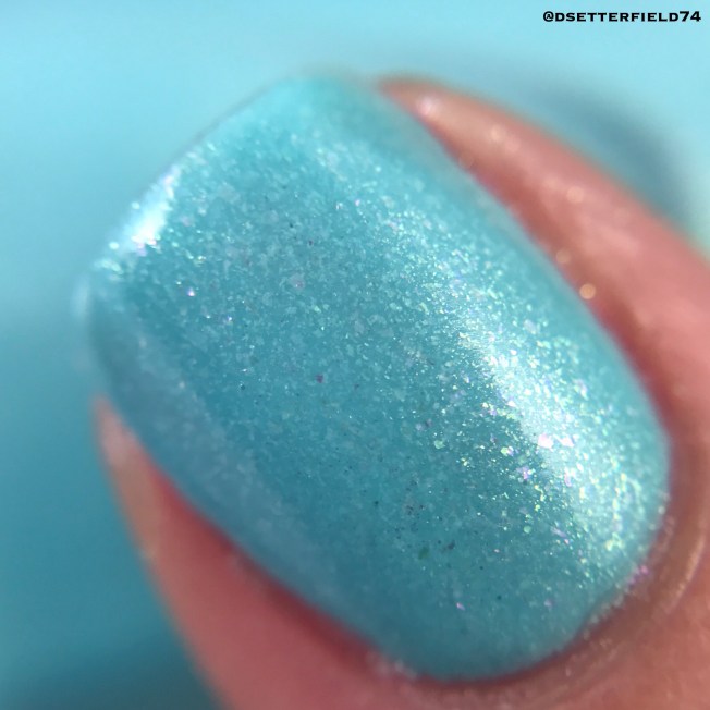 This one has an aqua blue creme base with gold shimmer and flashes of purple and green sparks. It’s so dreamy! When I think of spring, it’s colors like this that quickly come to mind. And you’re gonna want it, just so you know. Cuz no one does Crazy Nail Lady quite like you.