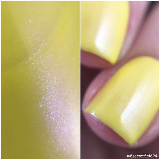 This one is a medium yellow creme with lavender shimmer. At first glance, I thought this one had a red shimmer, but these photos prove otherwise. Most likely I was swatching it with one eye closed, cuz naps just happen sometimes.