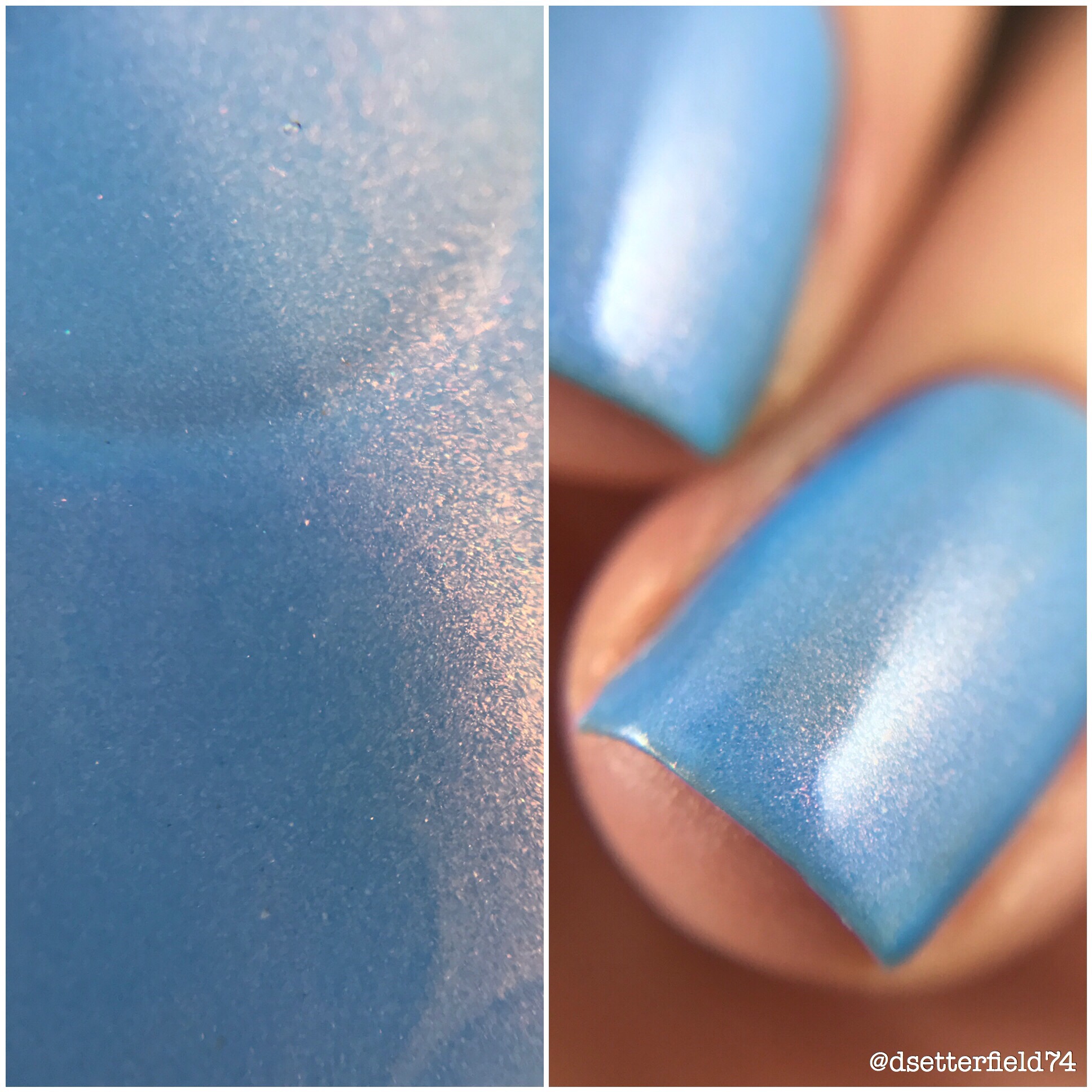 This one has an aqua blue creme base with gold shimmer and flashes of purple and green sparks. It’s so dreamy! When I think of spring, it’s colors like this that quickly come to mind. And you’re gonna want it, just so you know. Cuz no one does Crazy Nail Lady quite like you.