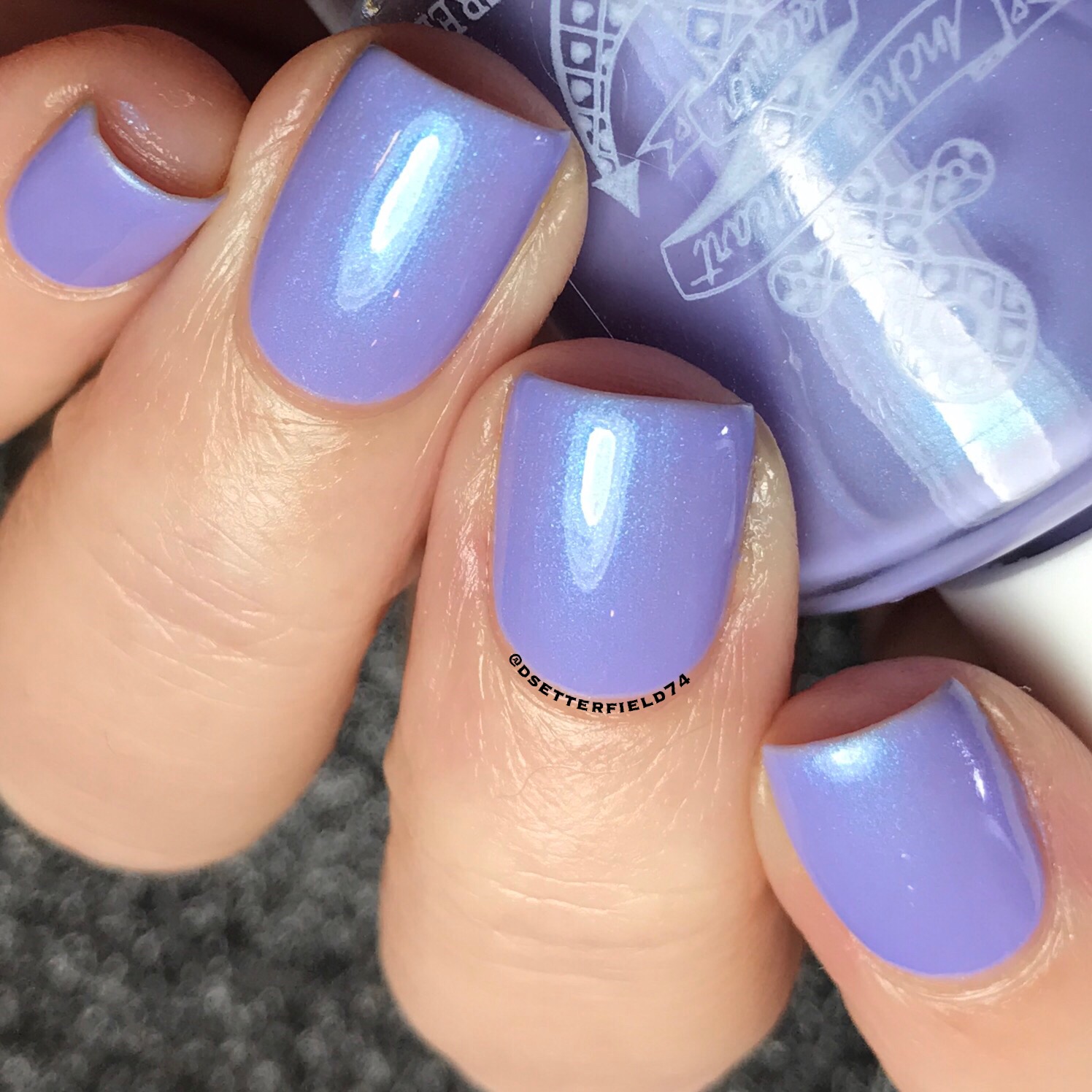 This one is a lavender purple creme with blue to purple shifting shimmer. And naturally, we’d end with a big ole exclamation point. The perfect cap to a perfect collection. It’s happiness with a Starbucks and a Leonardo on top, and what more could you ask for, really? Except for a basketful of kitties, NOT MUCH.