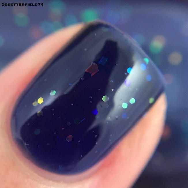 So this is a navy/cobalt blue jelly with a modest sprinkling of iridescent glitters. I did three coats in my swatches, although you may think about stopping at two. DON’T DO IT. That third coat is like angels singing. The depth of color is absolutely divine. Did someone just hand me a basket full of kitties? Might as well have.