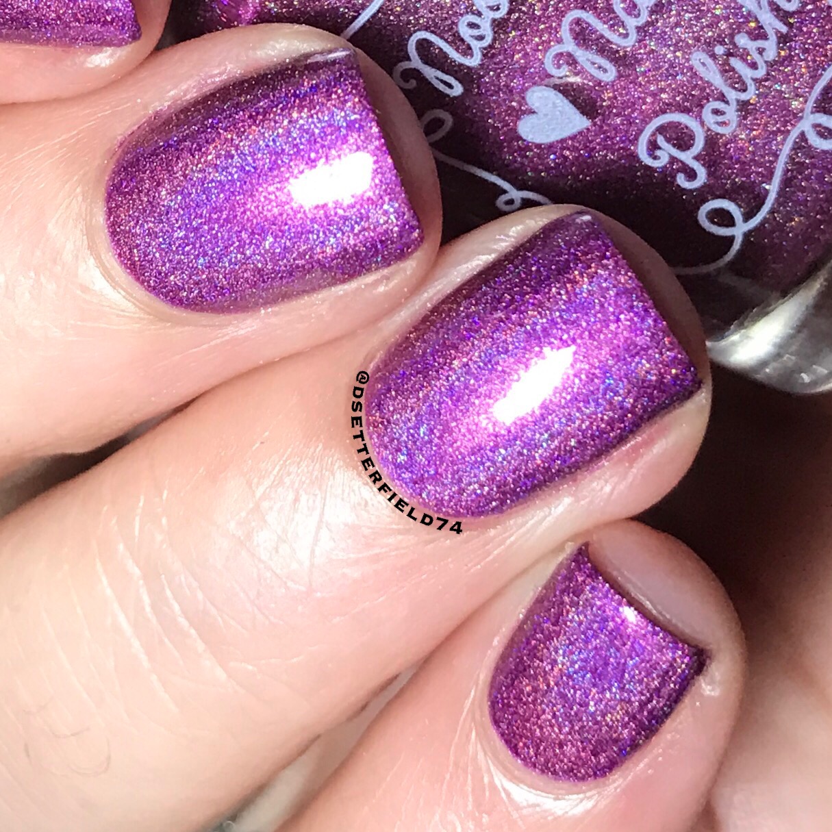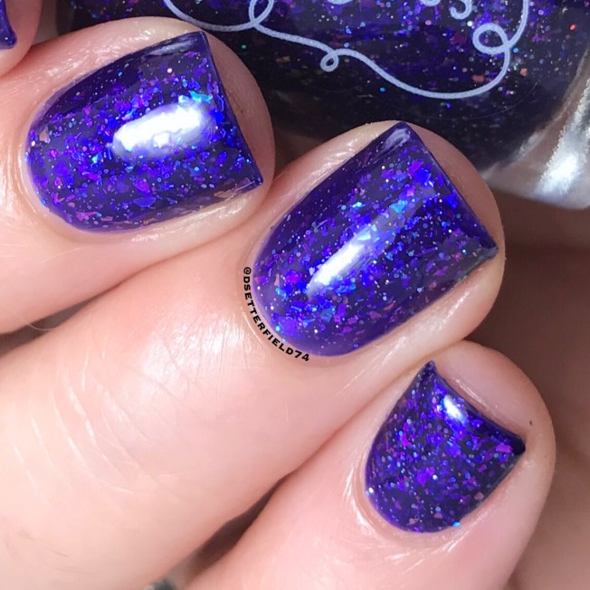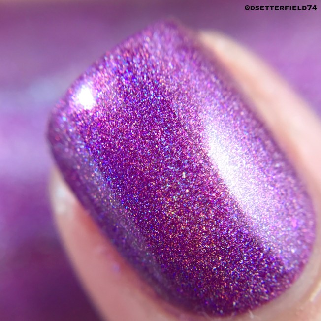 This one is a berry holographic with purple microshimmer. Nice and simple, but OMG, the formula is divine. I’d lick it if the judgy eyes weren’t lurking. Purple lovers! Get in here so I’m not the only crazy one in this blog. Seriously, cuz hubby is watching and I feel a noodle leg epidemic coming on.