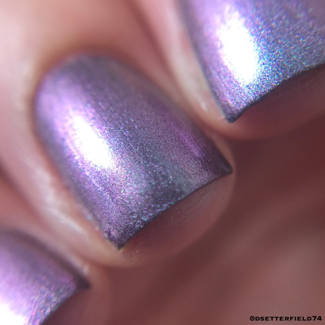 DESCRIPTION: A multichrome that shifts from silver to purple to green with a dash of holographic glitter