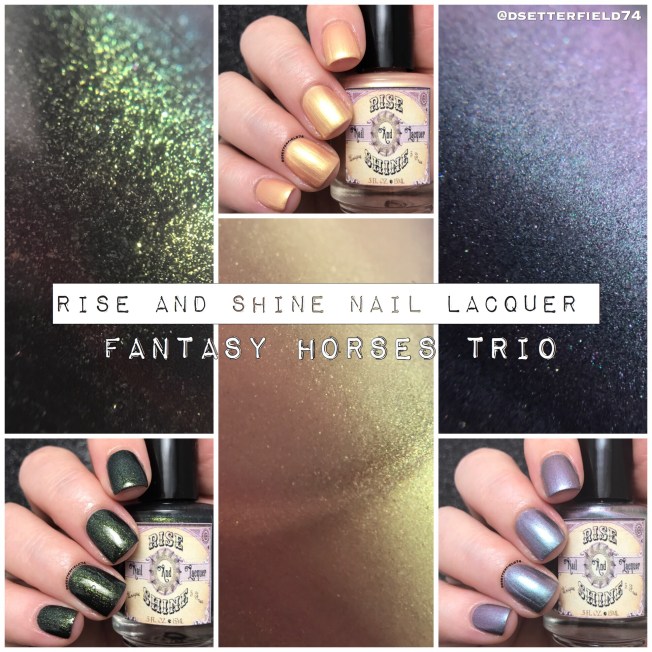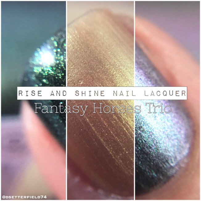 But good thing there’s nail polish! I have some goodies to share with you from a relatively new brand called Rise and Shine Nail Lacquer. Sarah’s latest collection is this pretty little set of polishes called the Fantasy Horses Trio, and if you love yourself a bit of multichrome, well you’re about to have yourself a var var good day. Take a look at what you’re buying: