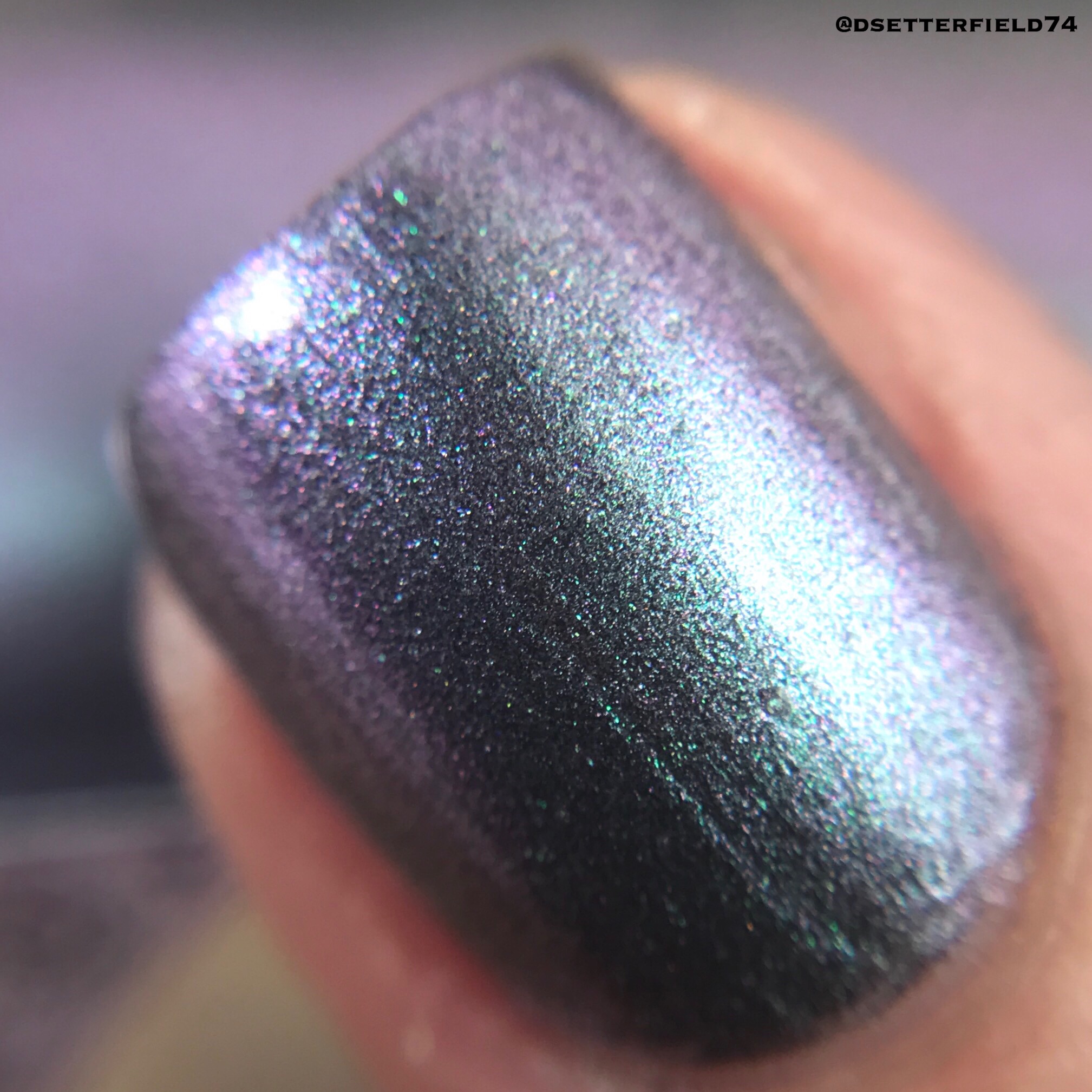DESCRIPTION: A multichrome that shifts from silver to purple to green with a dash of holographic glitter