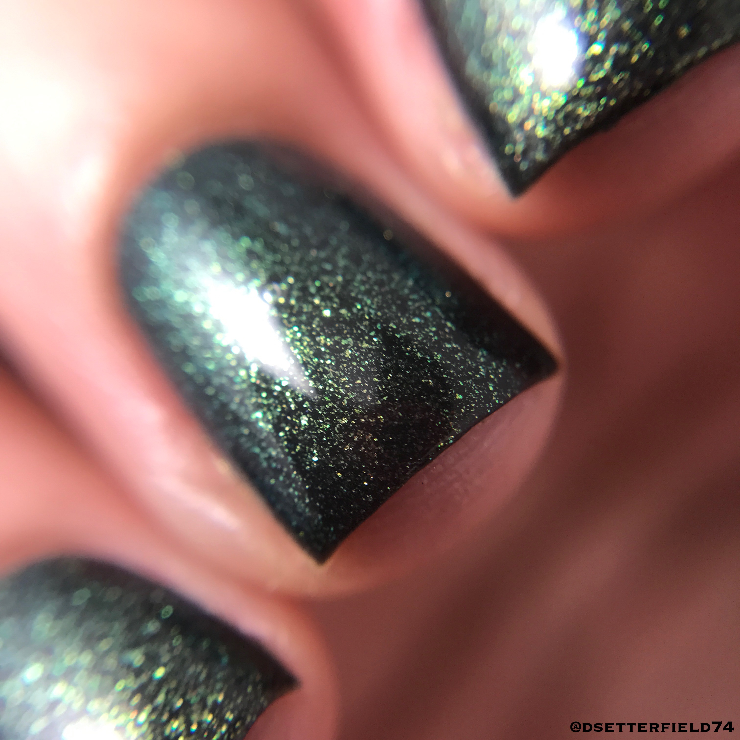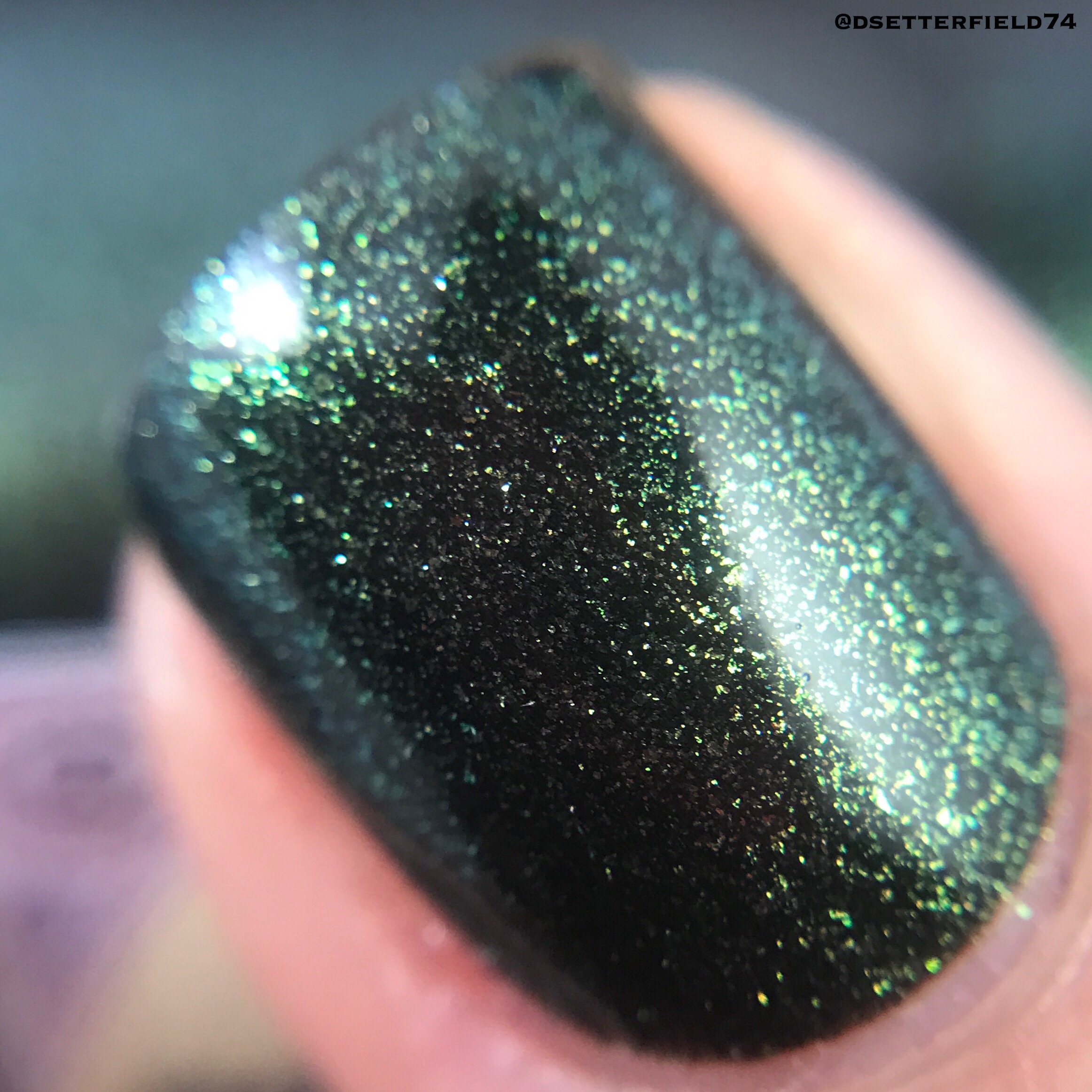 DESCRIPTION: Black base that shifts between green and gold with a bit of turquoise at the edges