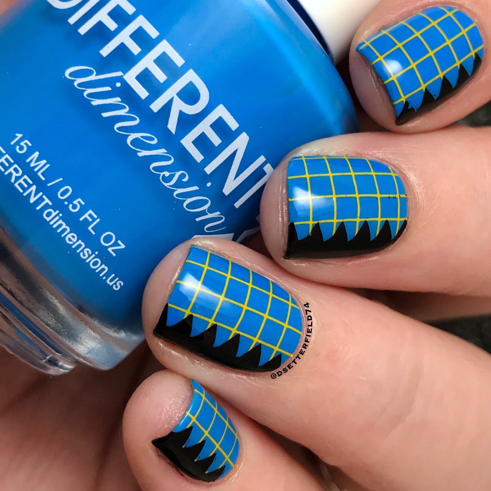 You know, I don’t hate it and that’s good enough for me! I stamped with Bomb and the Powder Perfect 1980s 1 plate to make the blue triangles and stamped with OMG and the Lina Make Your Mark 05 plate to make the pink splatter. Who’s doing recreations? Anyone? Anyone?