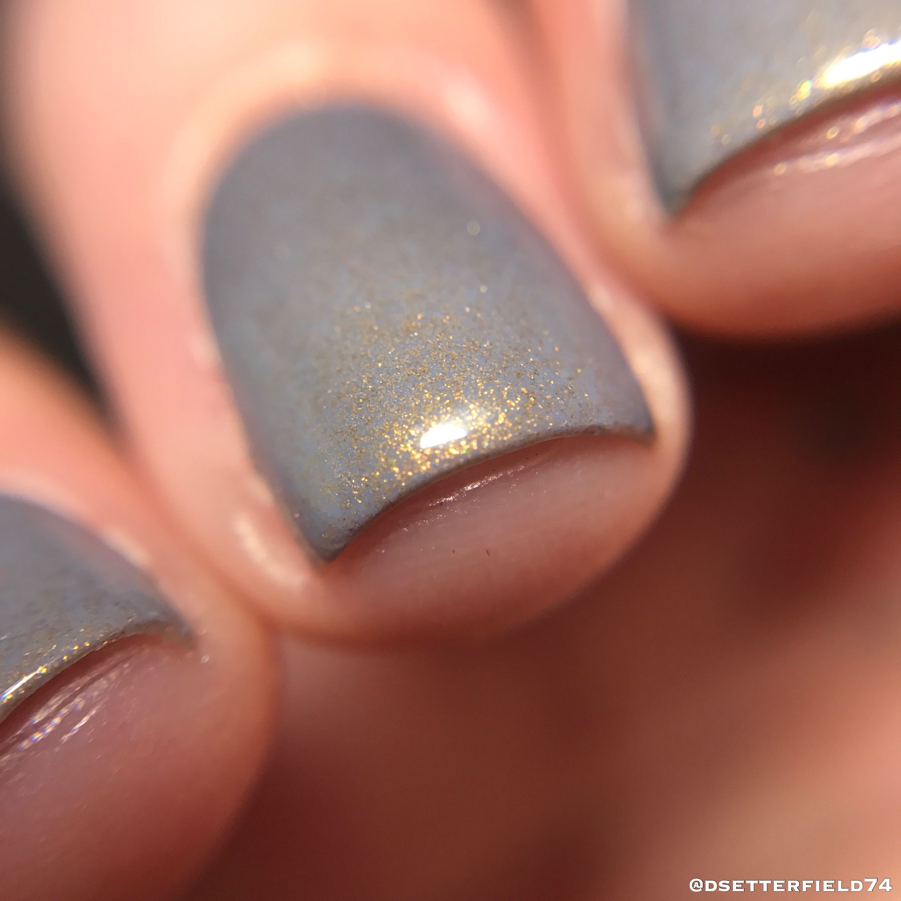 DESCRIPTION: A light grey-blue base multichrome with shifts of coppery-bronze, gold and green