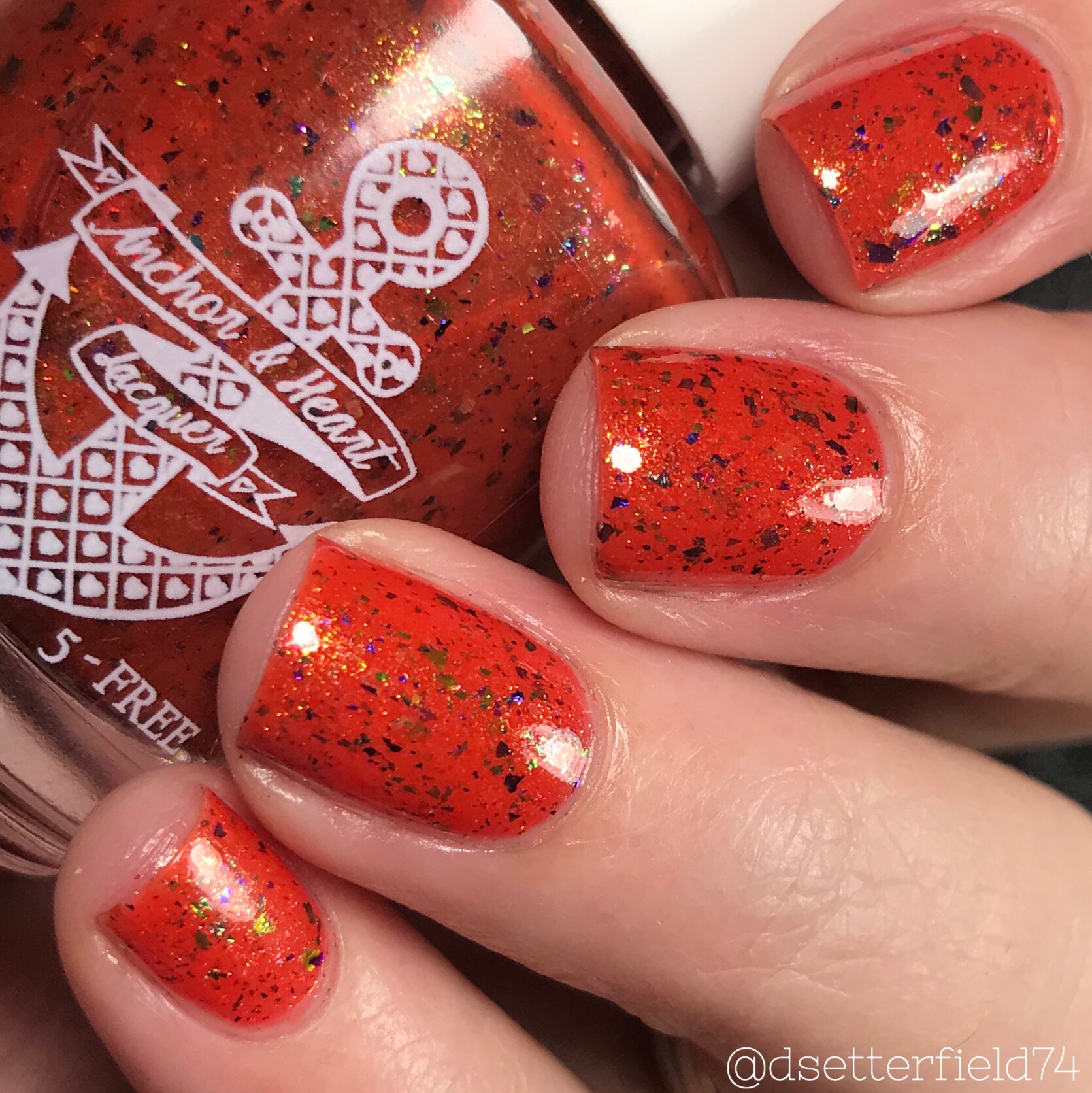But in an effort to stay married at least while we’re on this trip, I’ll make this blog quick. Received a most glorious thing from Taryn with Anchor & Heart Lacquer to share with you today, and OMG the ladylike composure is already out the freaking window. The flakies got me guys! They got me good. Take a look at what I mean:
