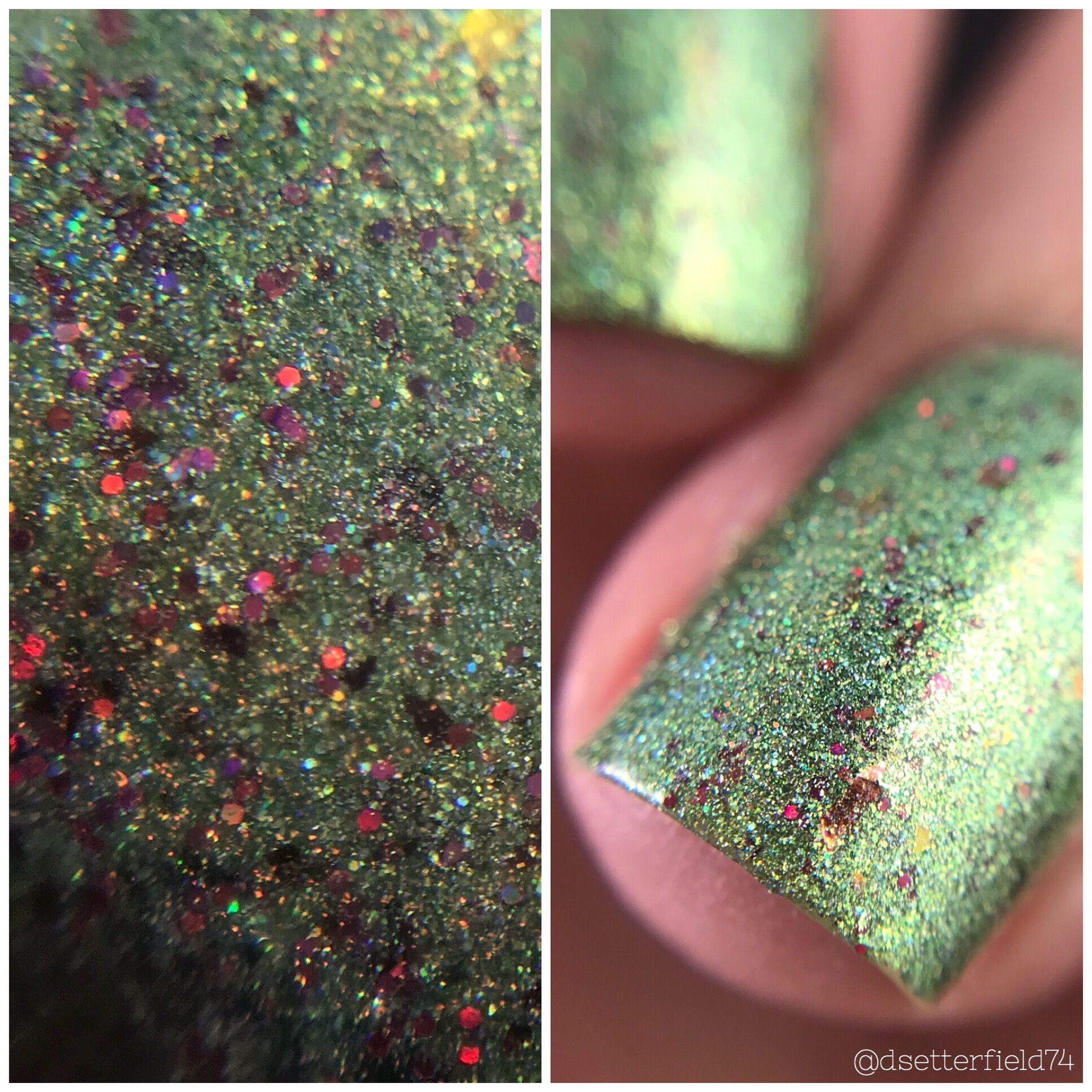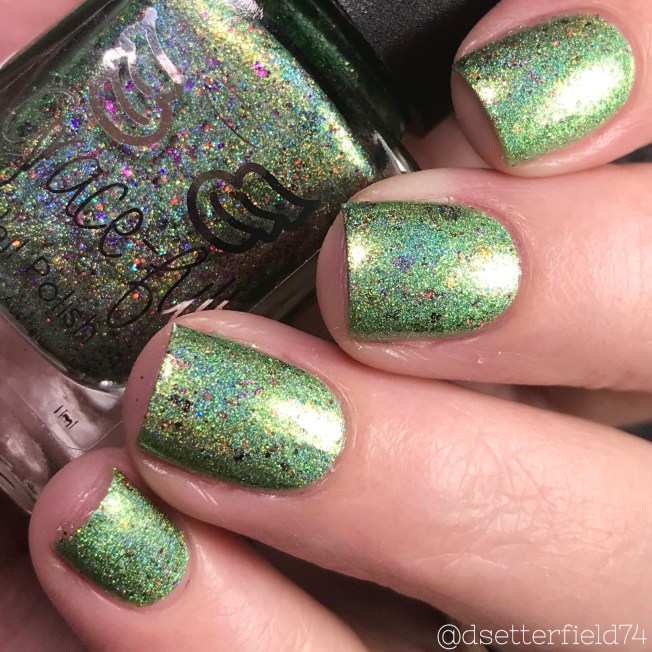 DESCRIPTION: A light lime green holographic with chameleon flakies and gold, fuchsia and green holographic microflakies
