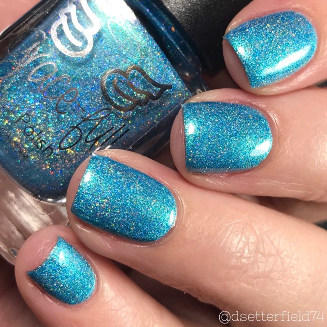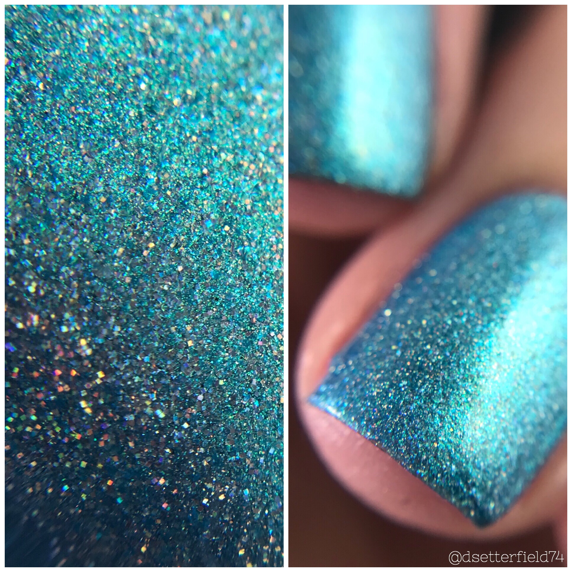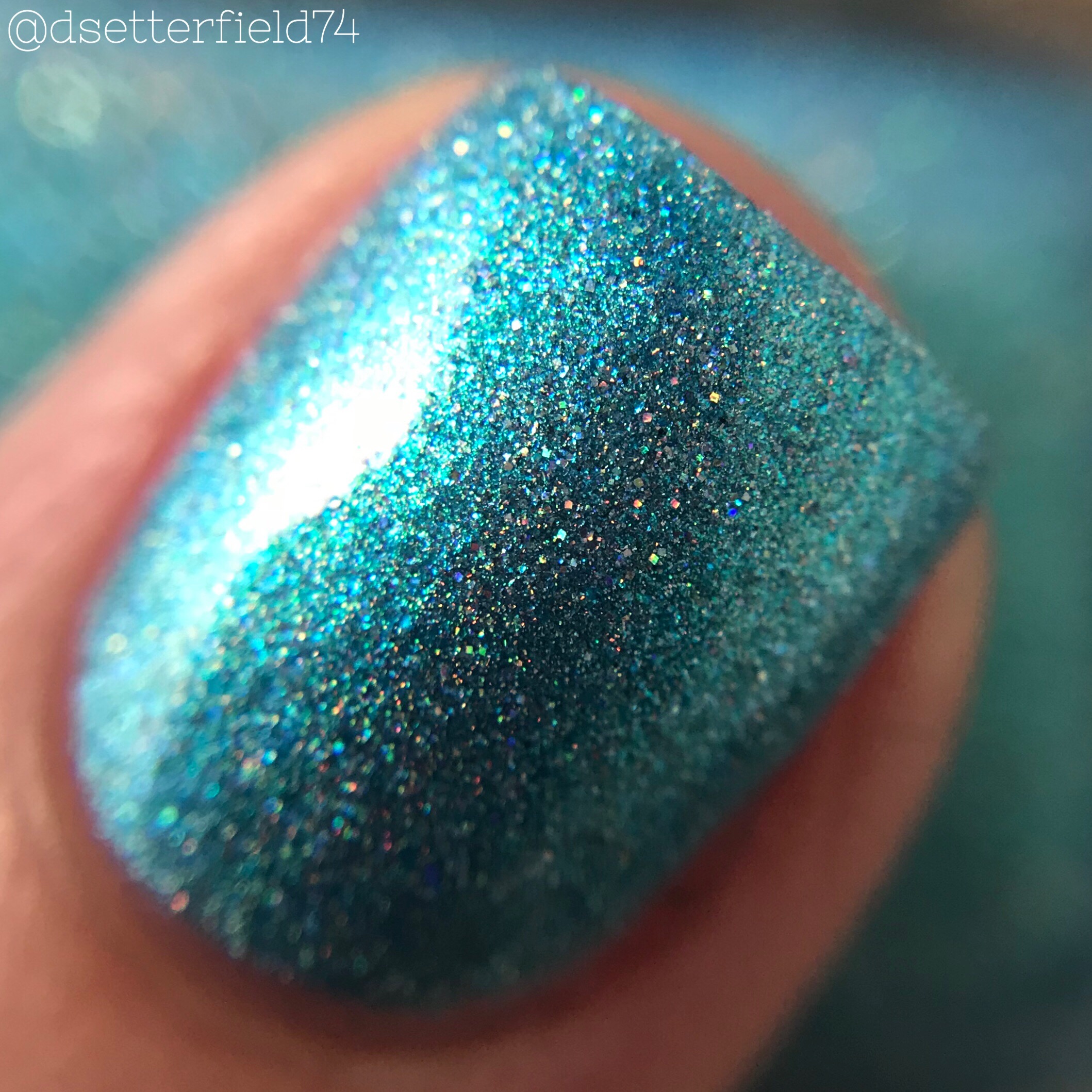 DESCRIPTION: A turquoise blue with silver holographic glitter and metallic sheen
