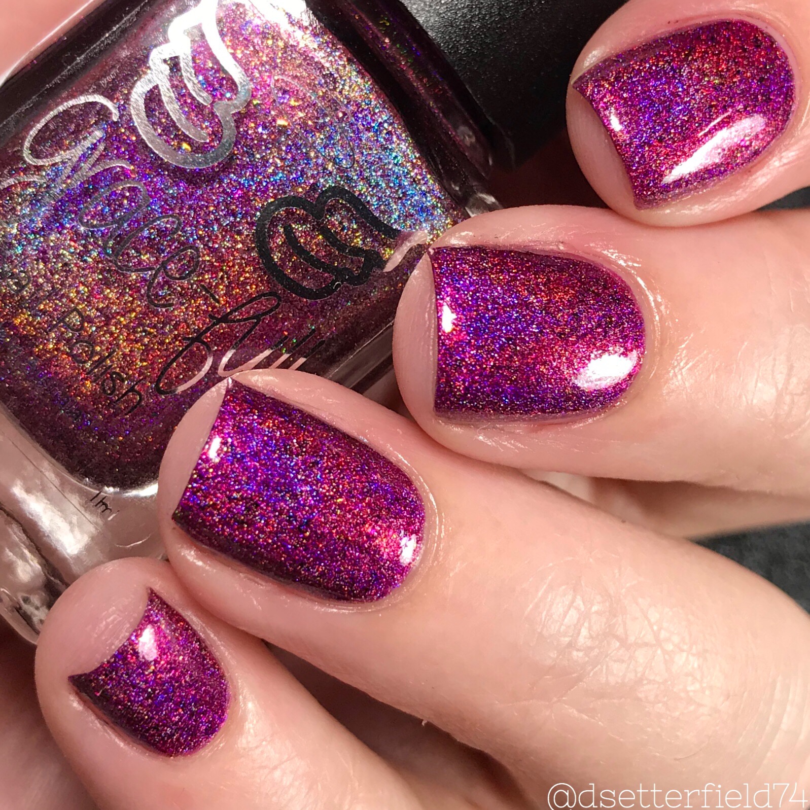 DESCRIPTION: A deep pink holographic with chameleon flakies and pink, gold, and blue holographic microflakies