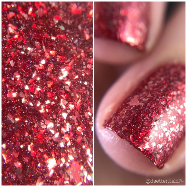 DESCRIPTION: A fire engine red packed with super shiny silver flakies and subtle holo effect