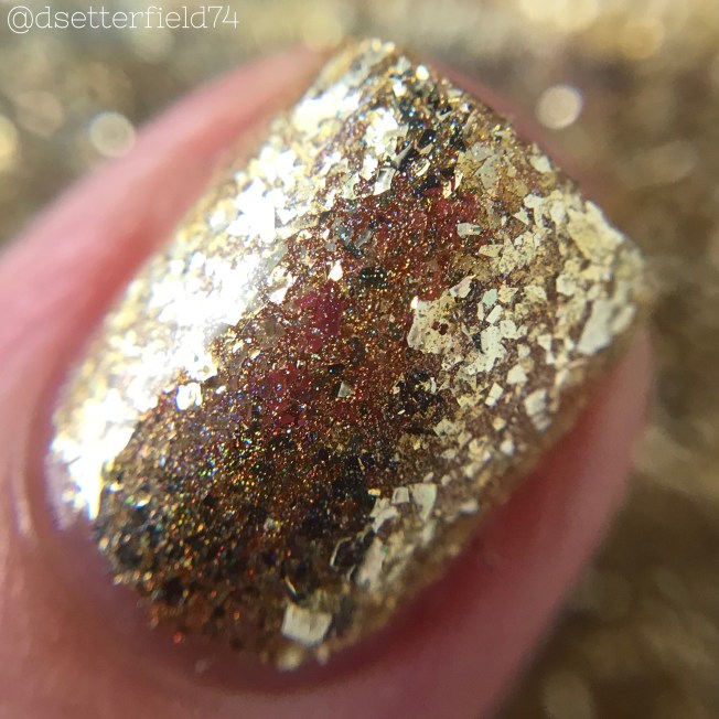 DESCRIPTION: A light gold packed with super shiny silver flakies and subtle holo effect