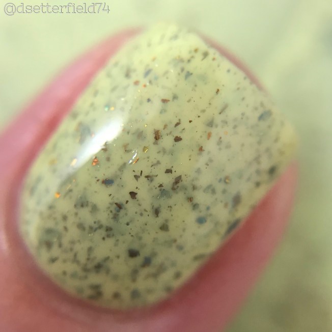 DESCRIPTION: An olive base with gold shimmer, gold flakies and holographic pigment