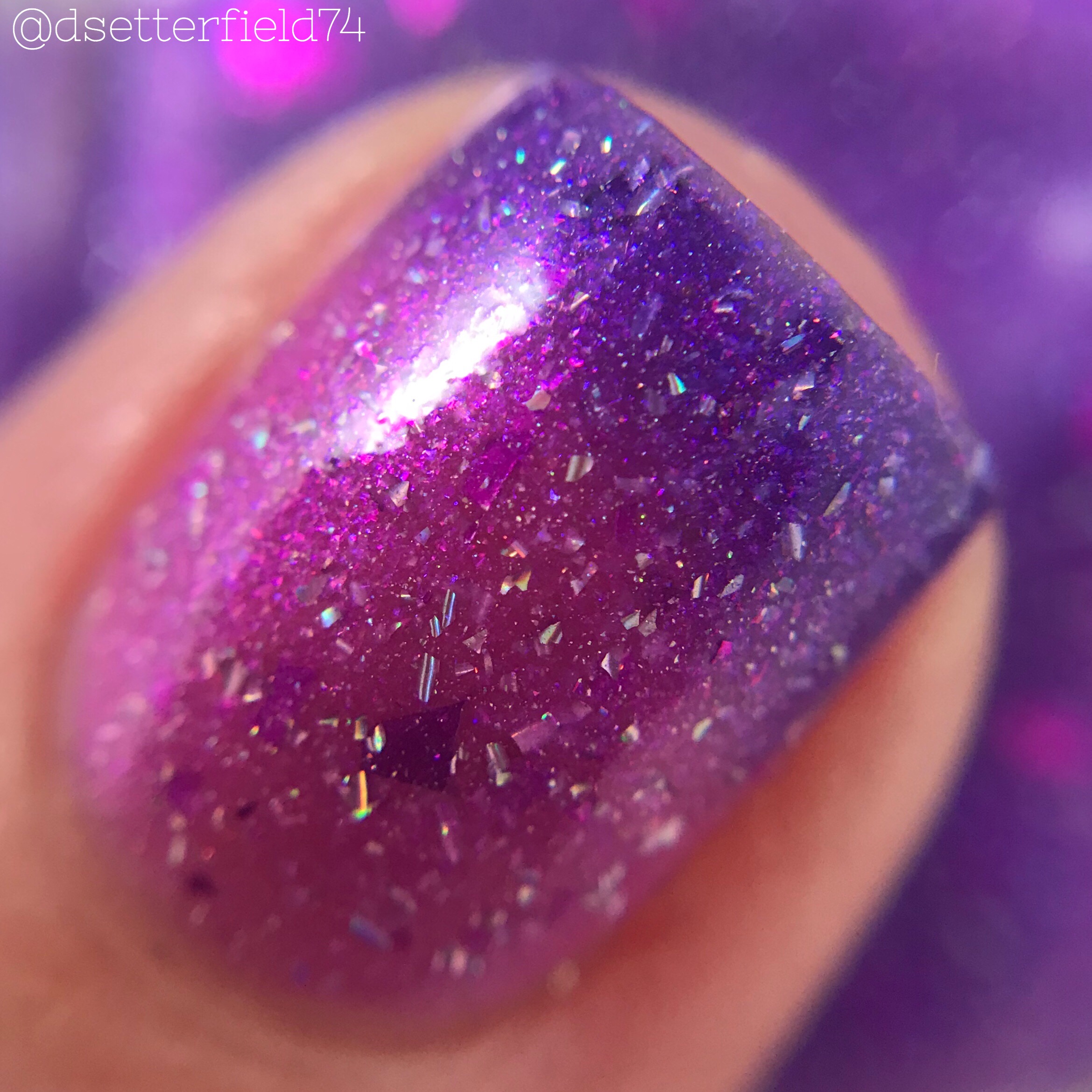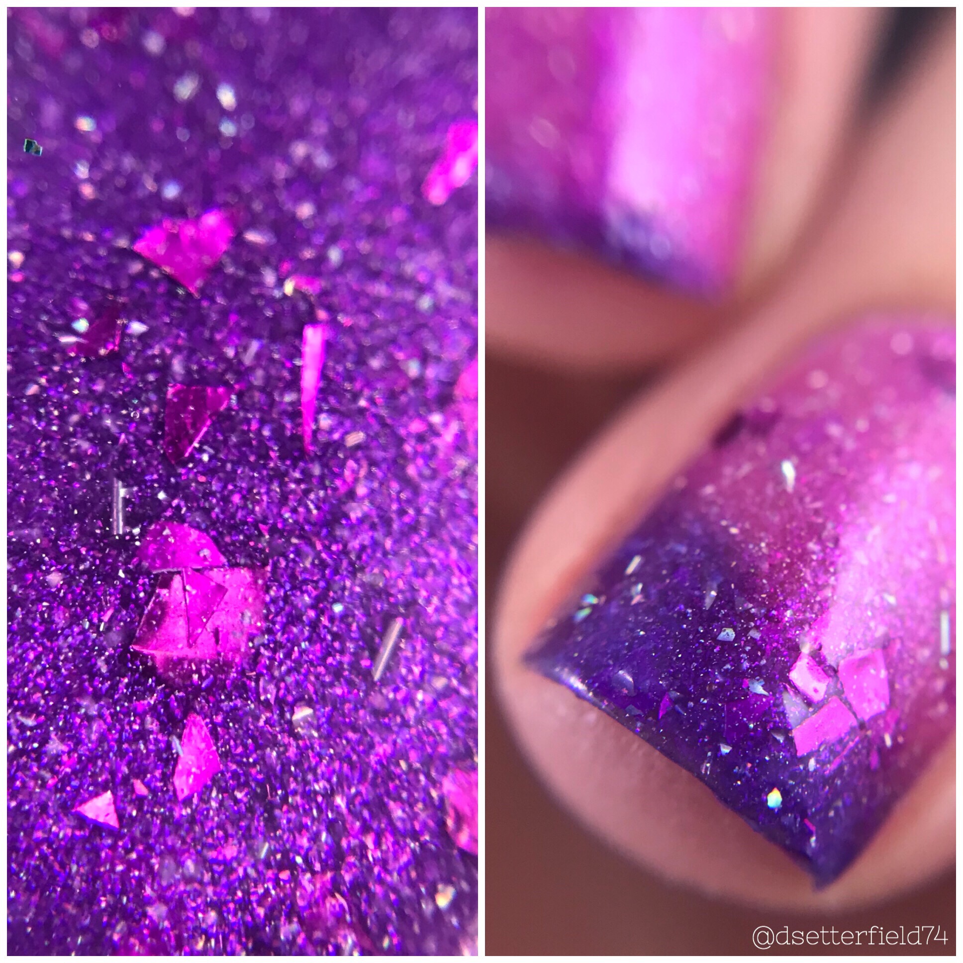 DESCRIPTION: A purple to pink thermal with bright purple shimmer, scattered holo and metallic fuchsia and holographic flakies