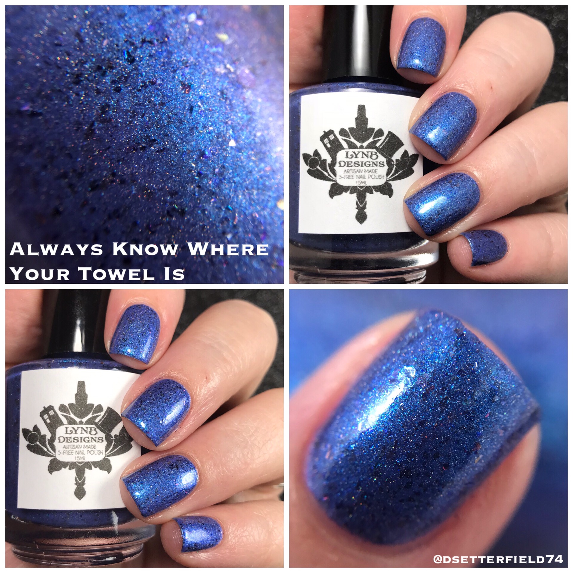 DESCRIPTION: A medium blue base packed with holo shimmer, slight blue to purple shift and tons of chameleon chrome flakies that shift from blue to aqua to purple