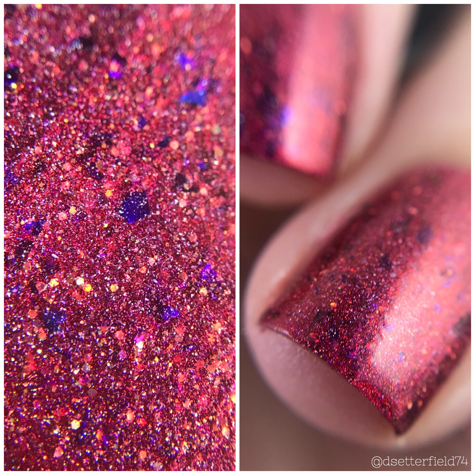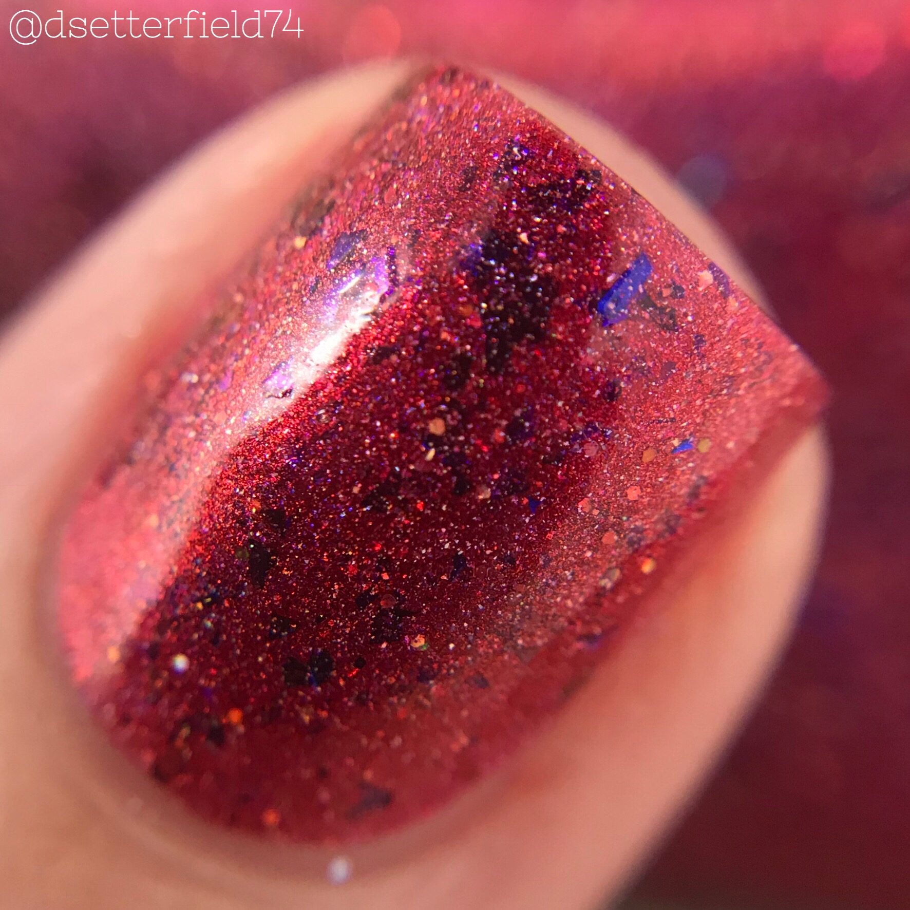DESCRIPTION: A dusky raspberry wine with fiery flame, loaded with violet purple chroma shifting flakies and both linear and scattered holo