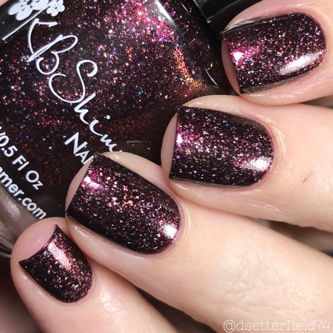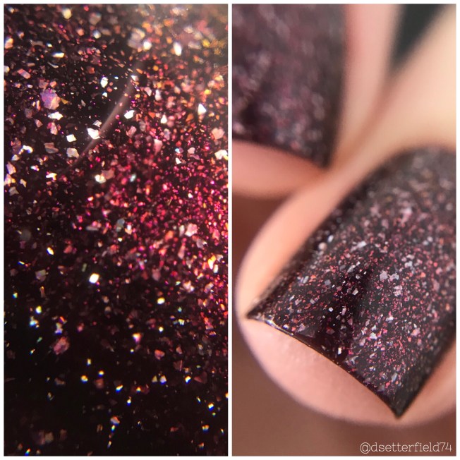 DESCRIPTION: A deep burgundy with chocolate undertones loaded with holographic glow flakies and red/copper shifting sparks