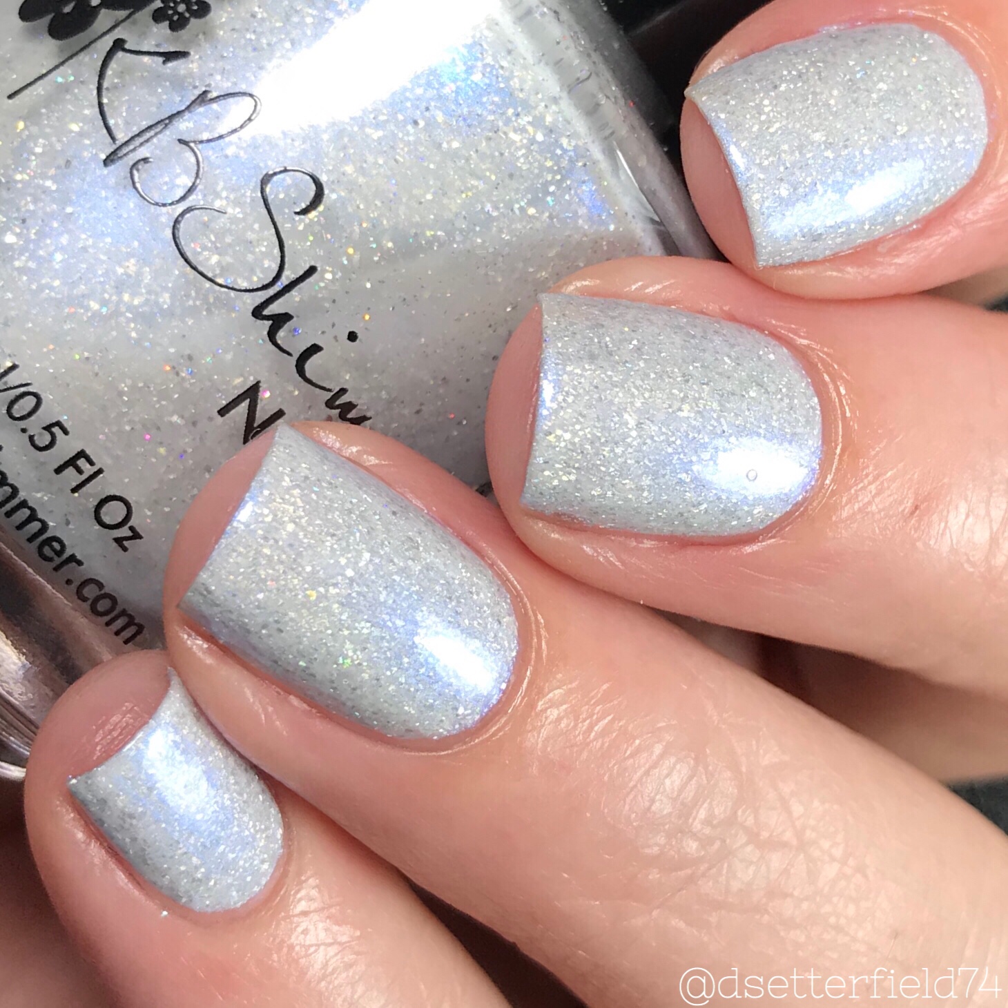 DESCRIPTION: A pale grey with holographic glow flakies, subtle blue shimmer and a dash of holographic microglitter