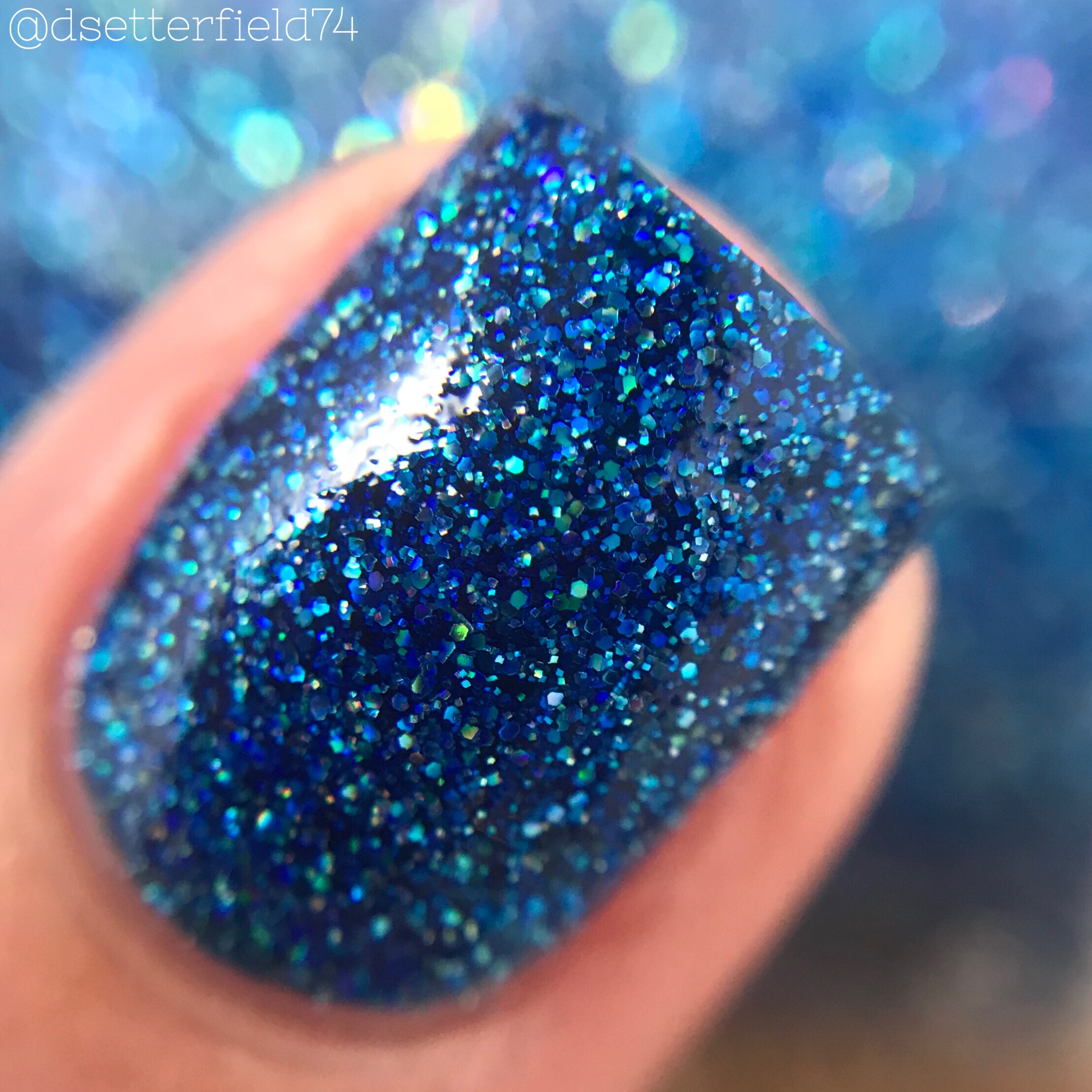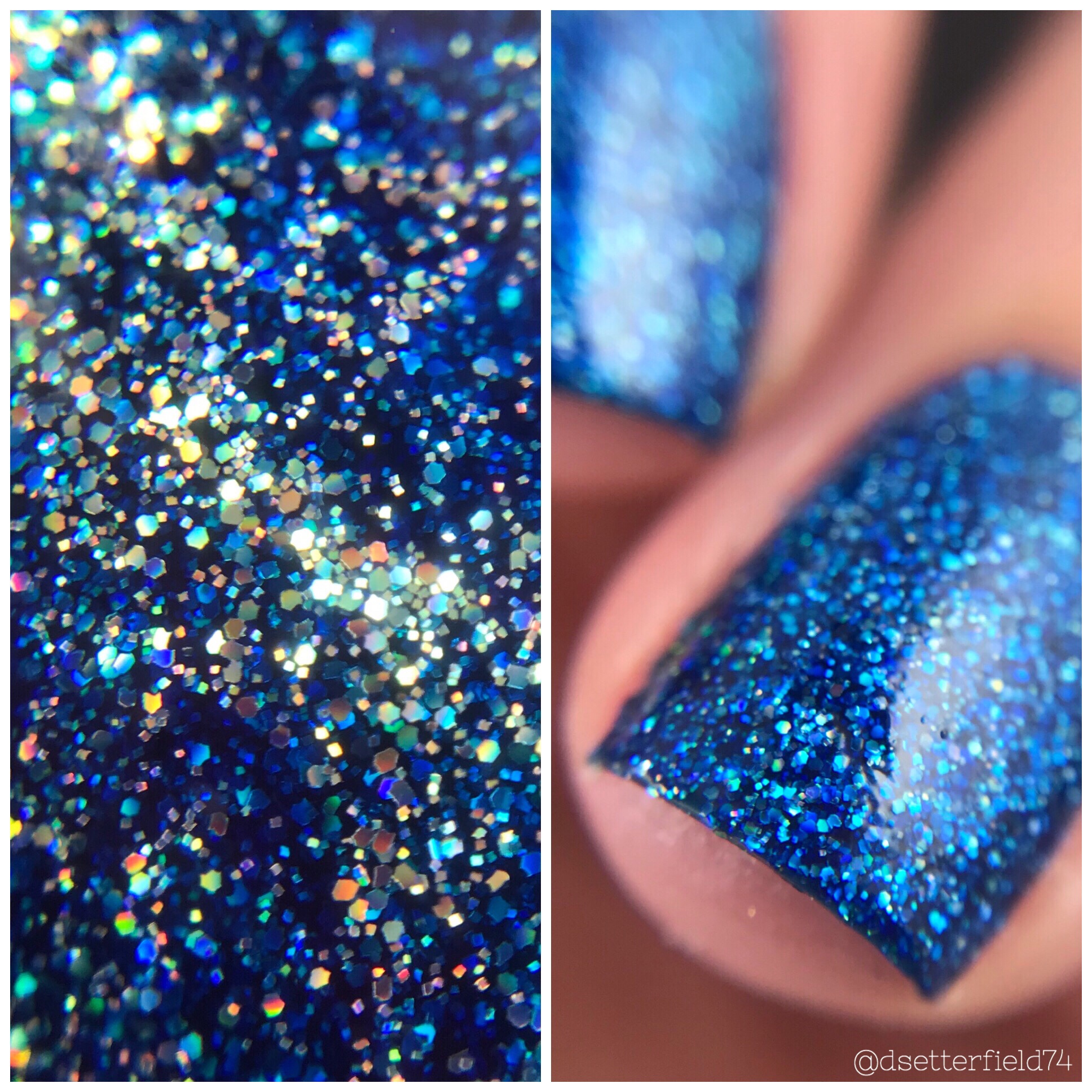 DESCRIPTION: A vibrant blue Mega Flame full of silver holographic microglitter