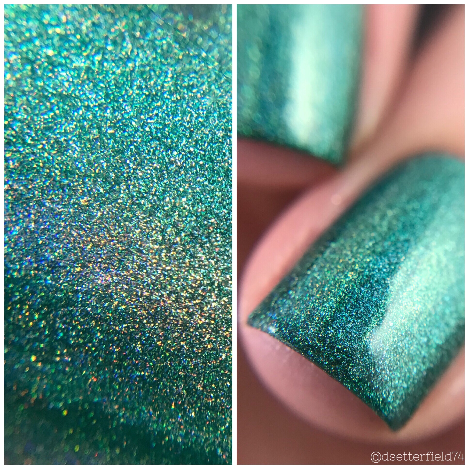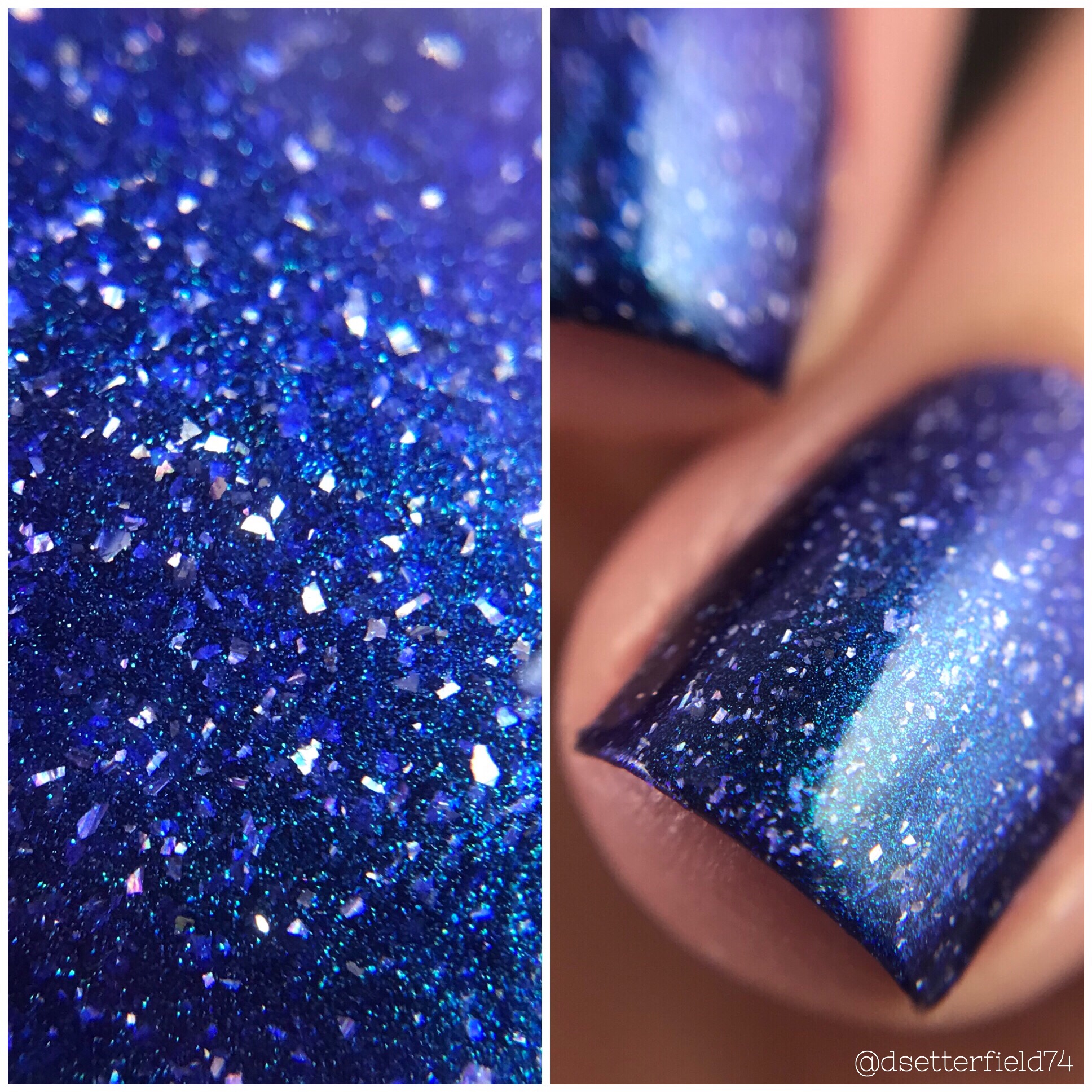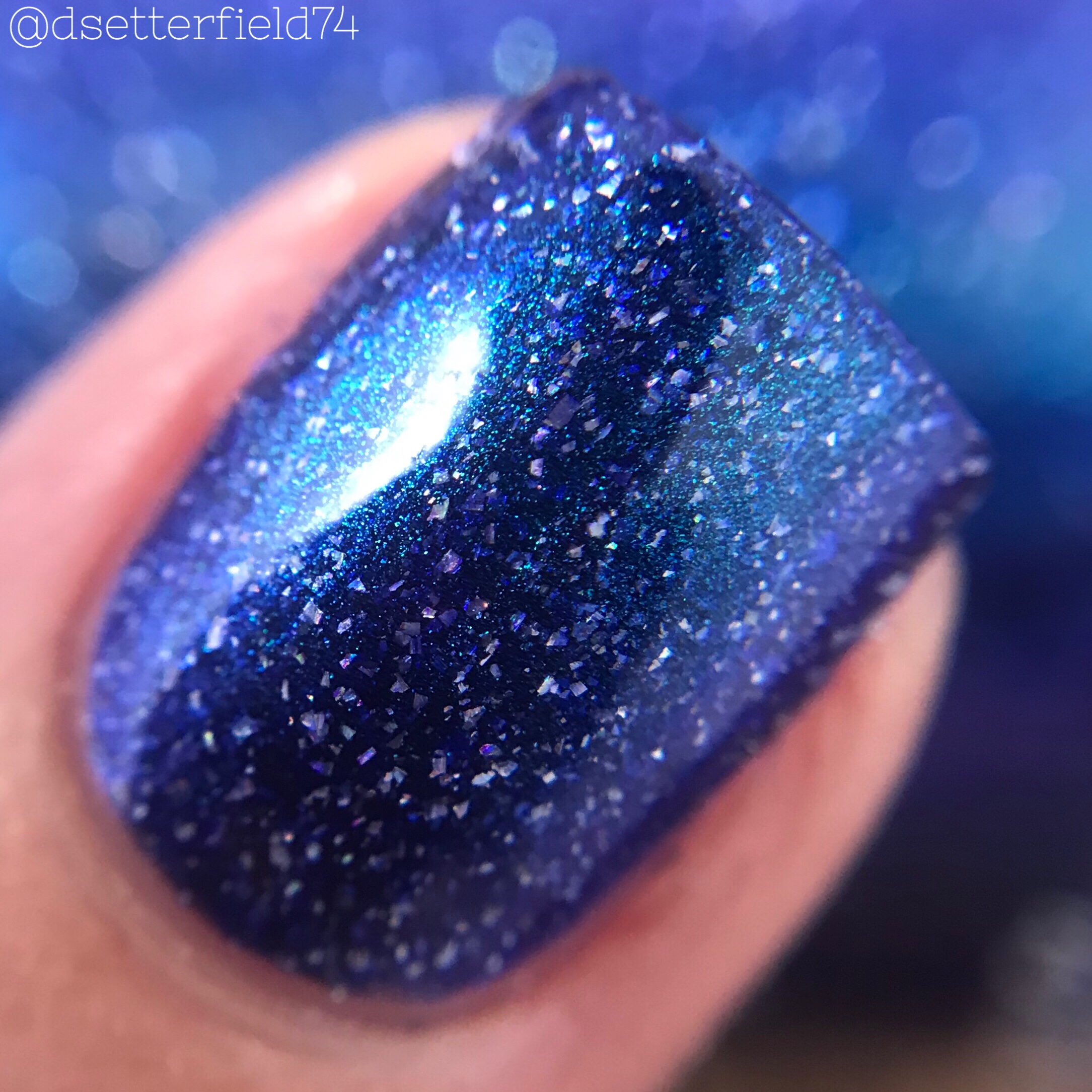 DESCRIPTION: A navy based multichrome that shifts between jewel toned purple and vibrant teal with holographic glow flakies